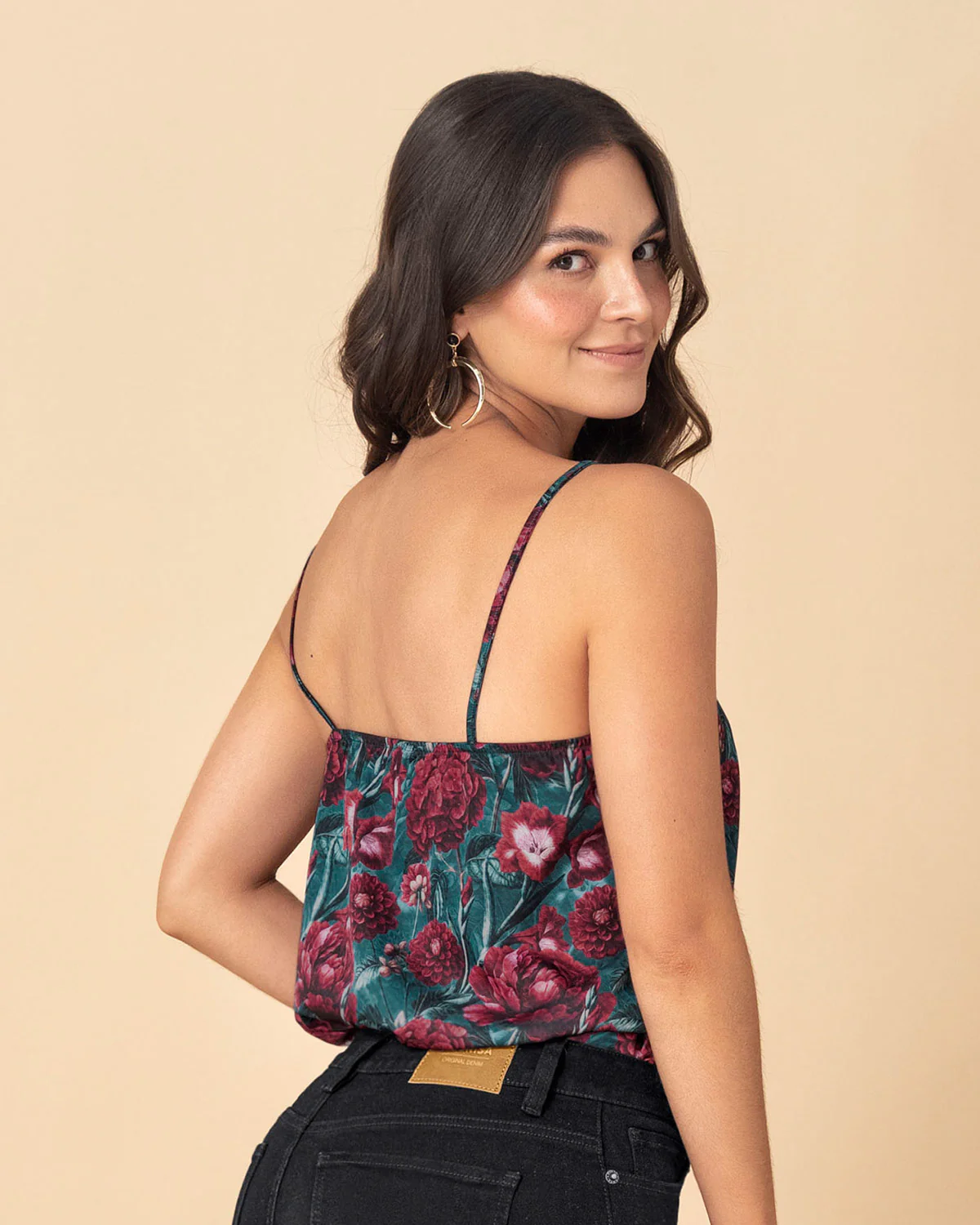 Blusa estampada de tiritas y escote recto
