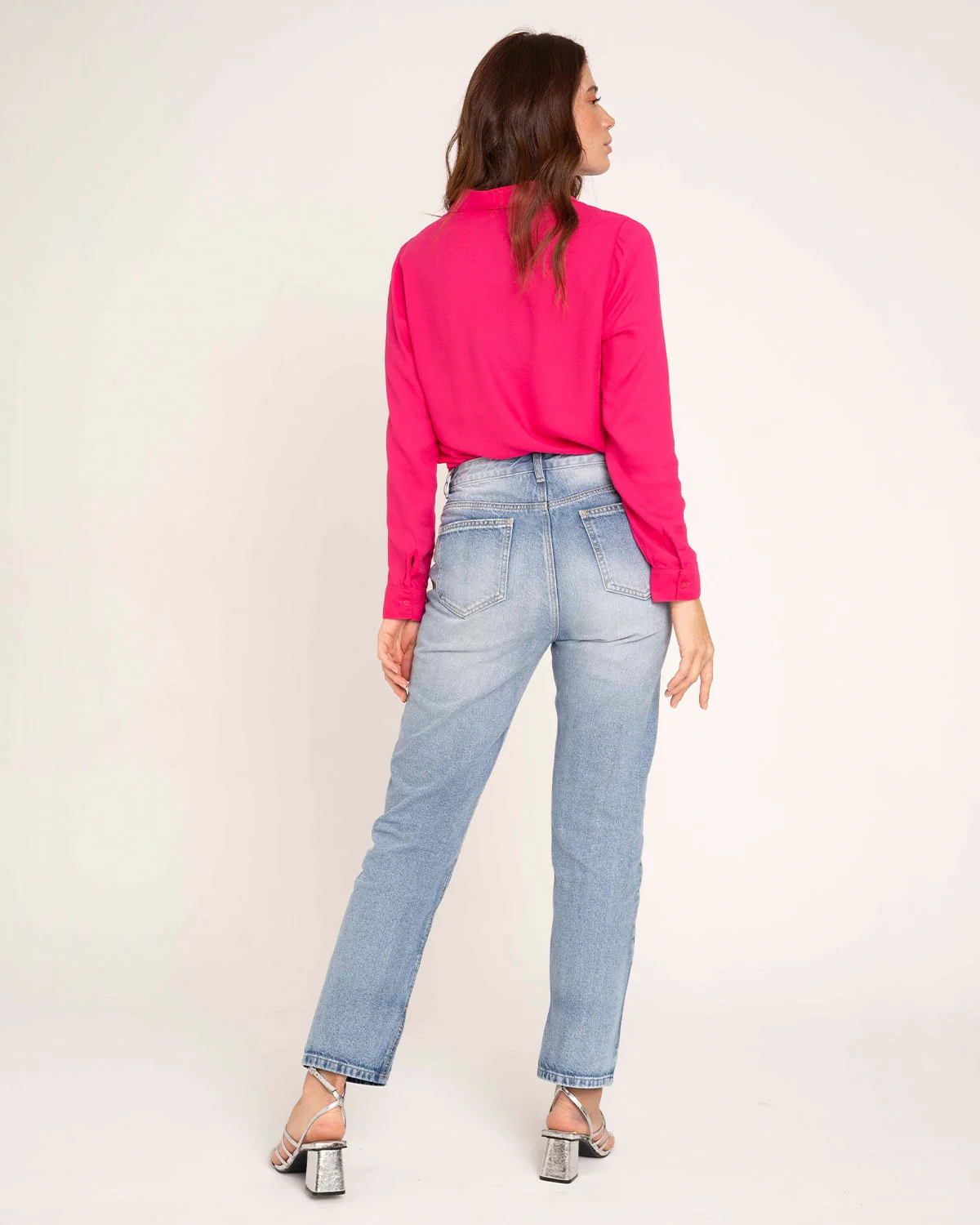 Blusa manga larga de cuello camisero con botones funcionales en frente