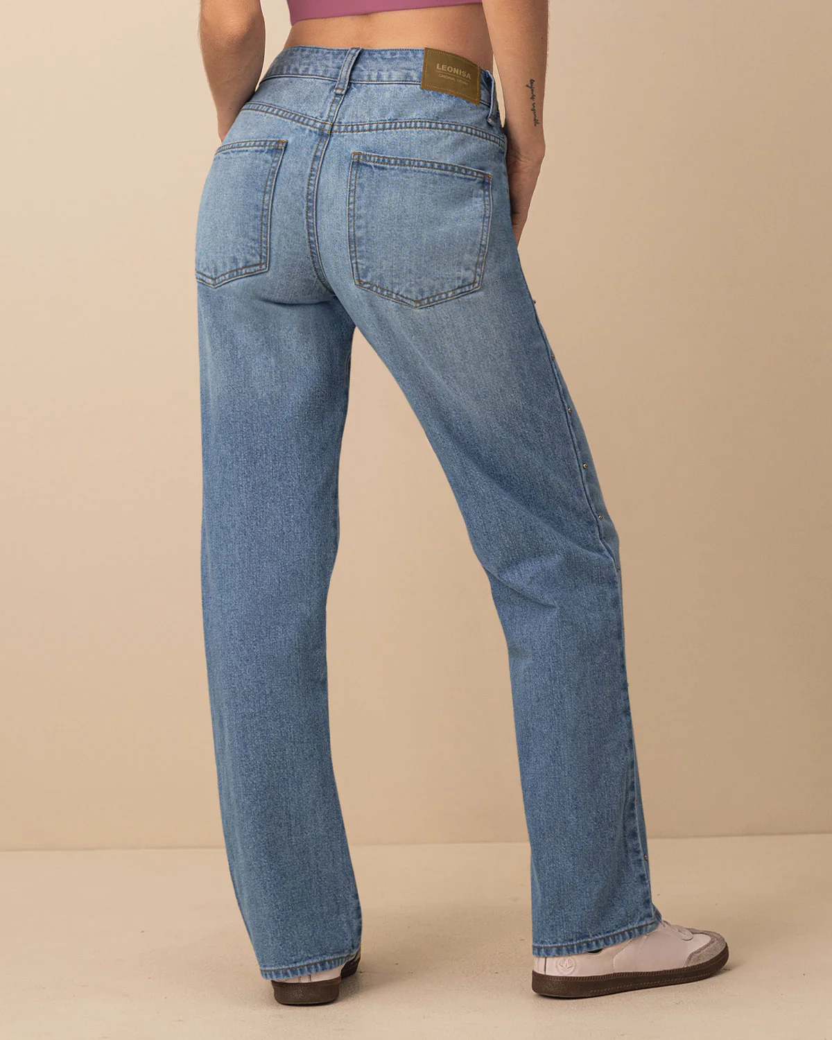 Jean bota recta con taches en los costados