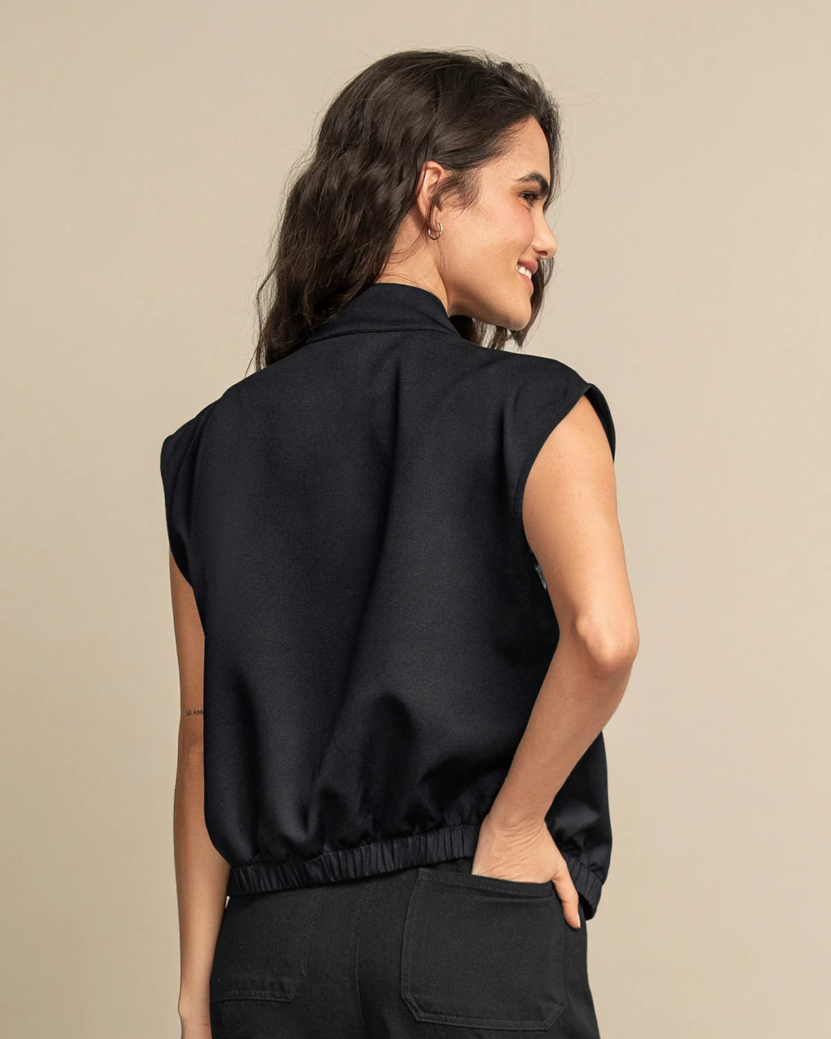 Camiseta manga sisa con ojaletes metálicos en el cuello