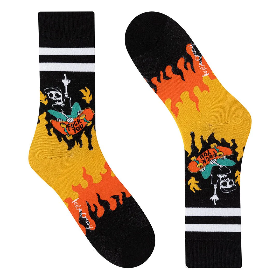 Calcetines divertidos de algodón «sin costuras». CALAVERA EN MONOPATIN