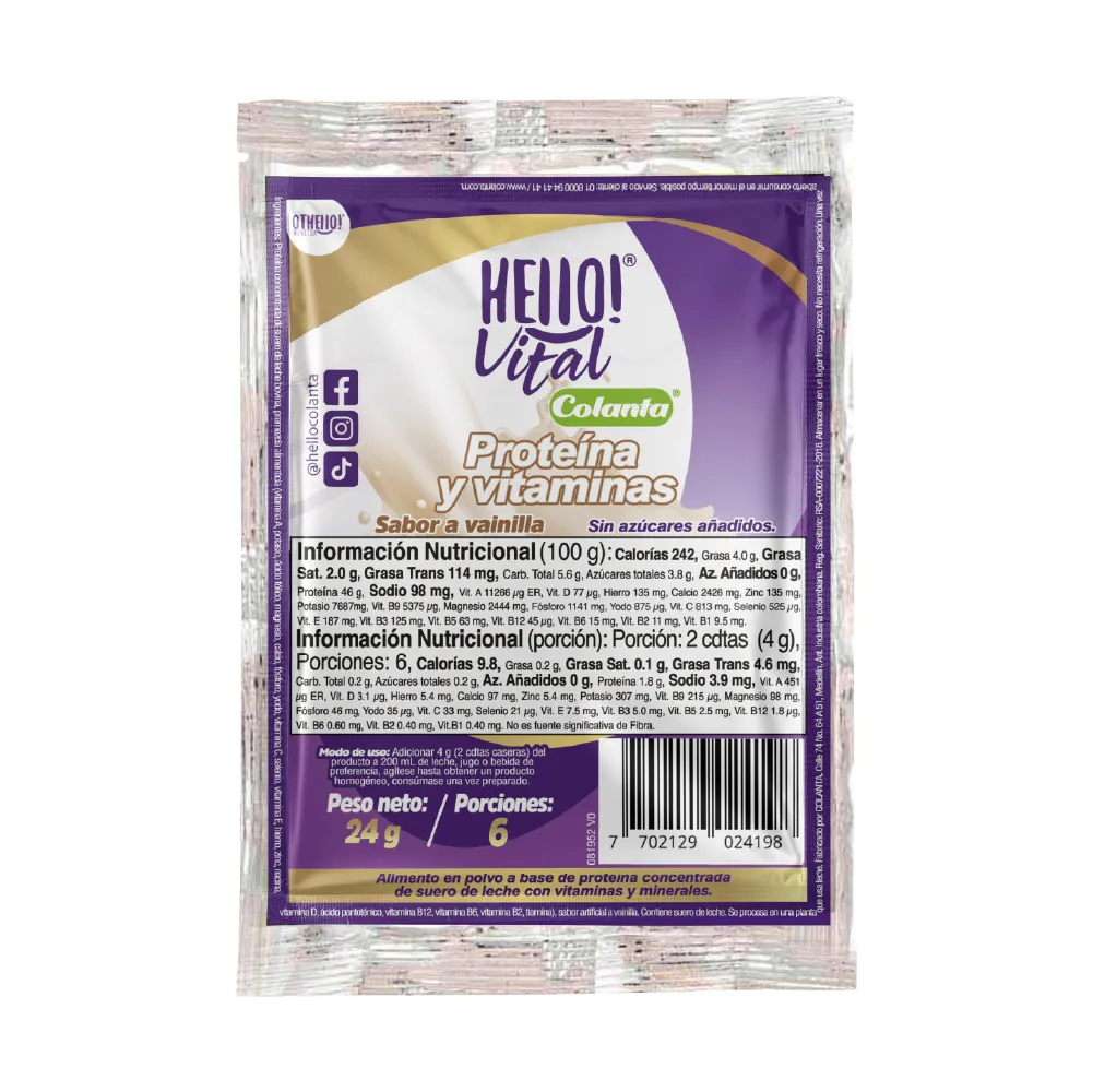 Proteína y vitaminas Hello! Vital Colanta X 240 g