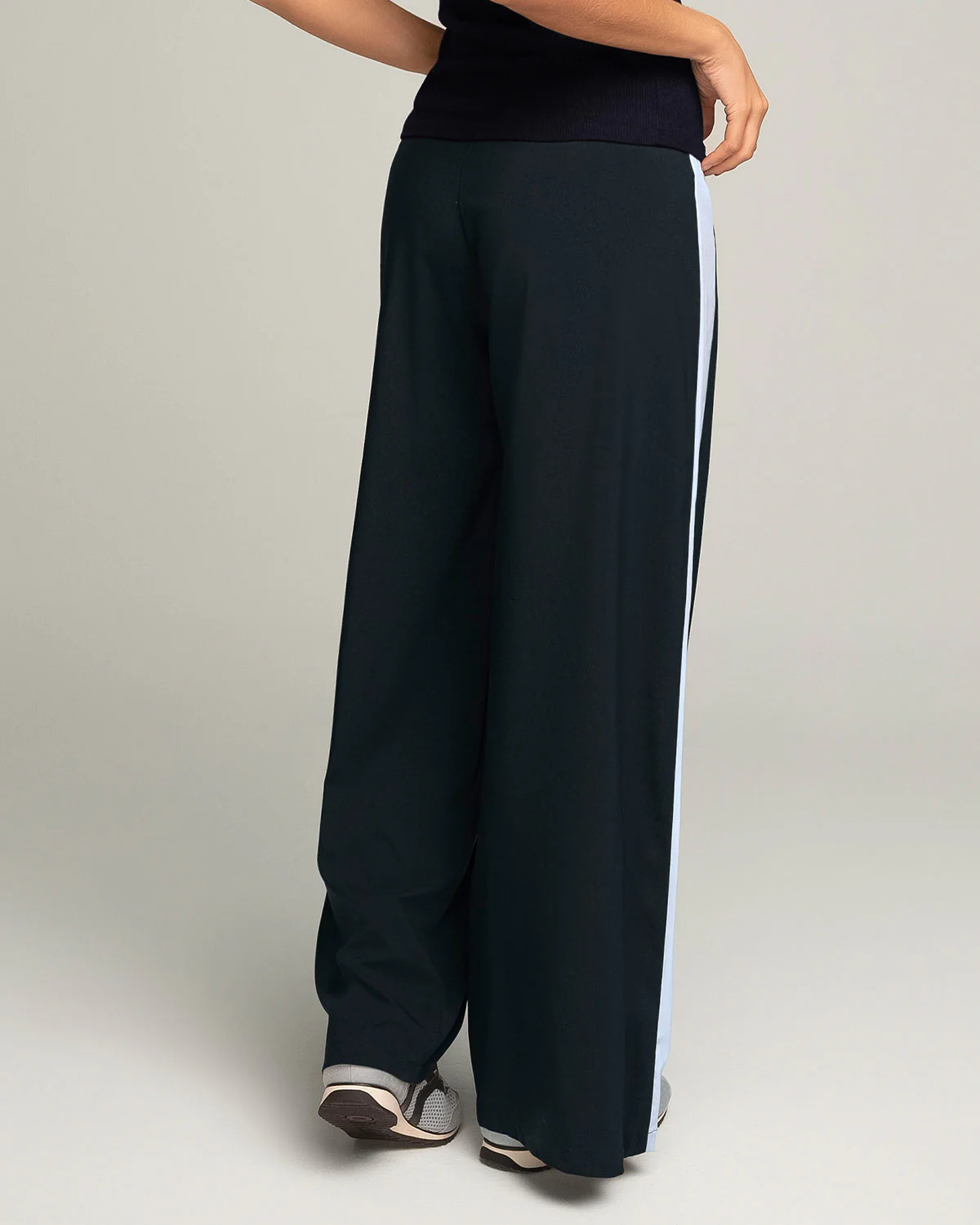 Pantalón bota ancha con detalle de aplique tejido en frente