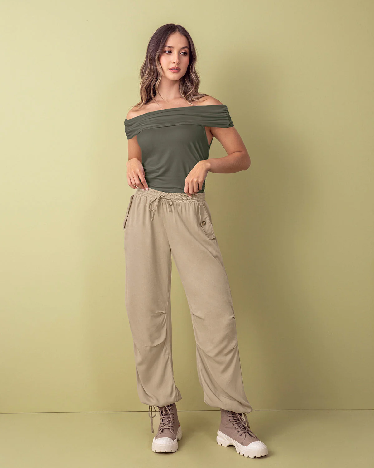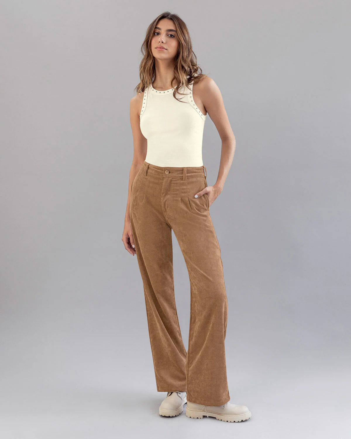 Pantalón tiro alto bota recta con bolsillo tipo cargo