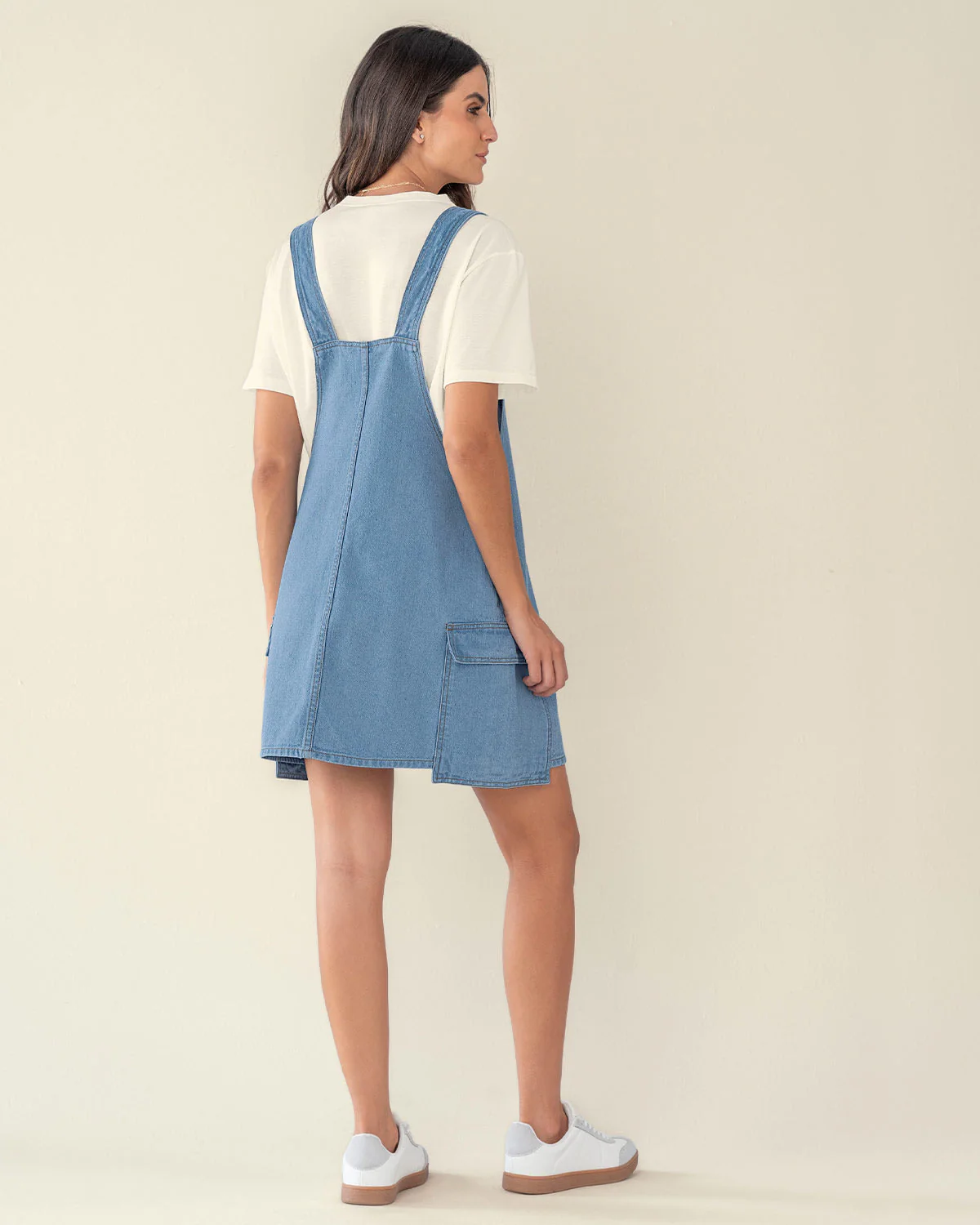 Vestido corto con escote cuadrado y nido de abeja en pecho y espalda