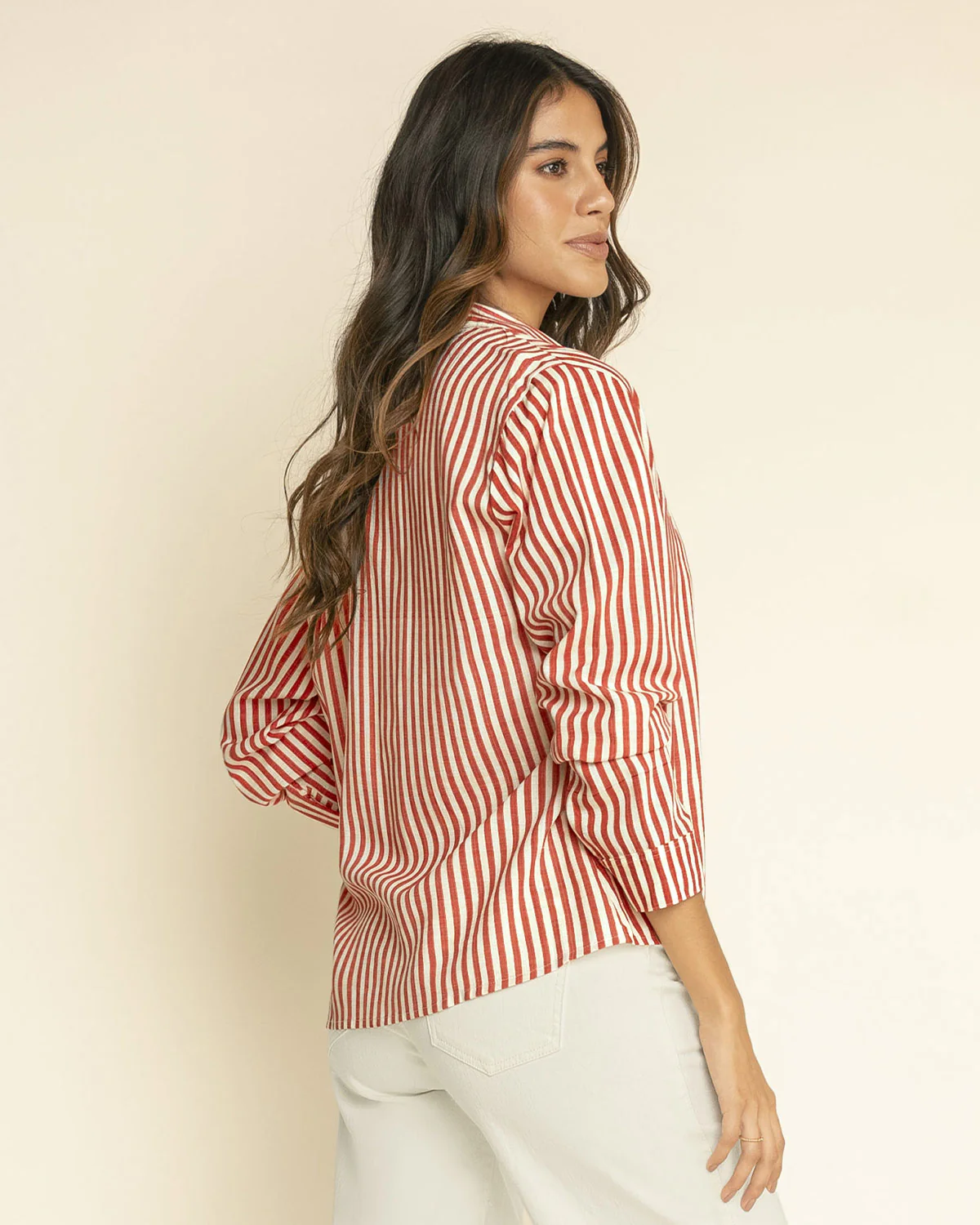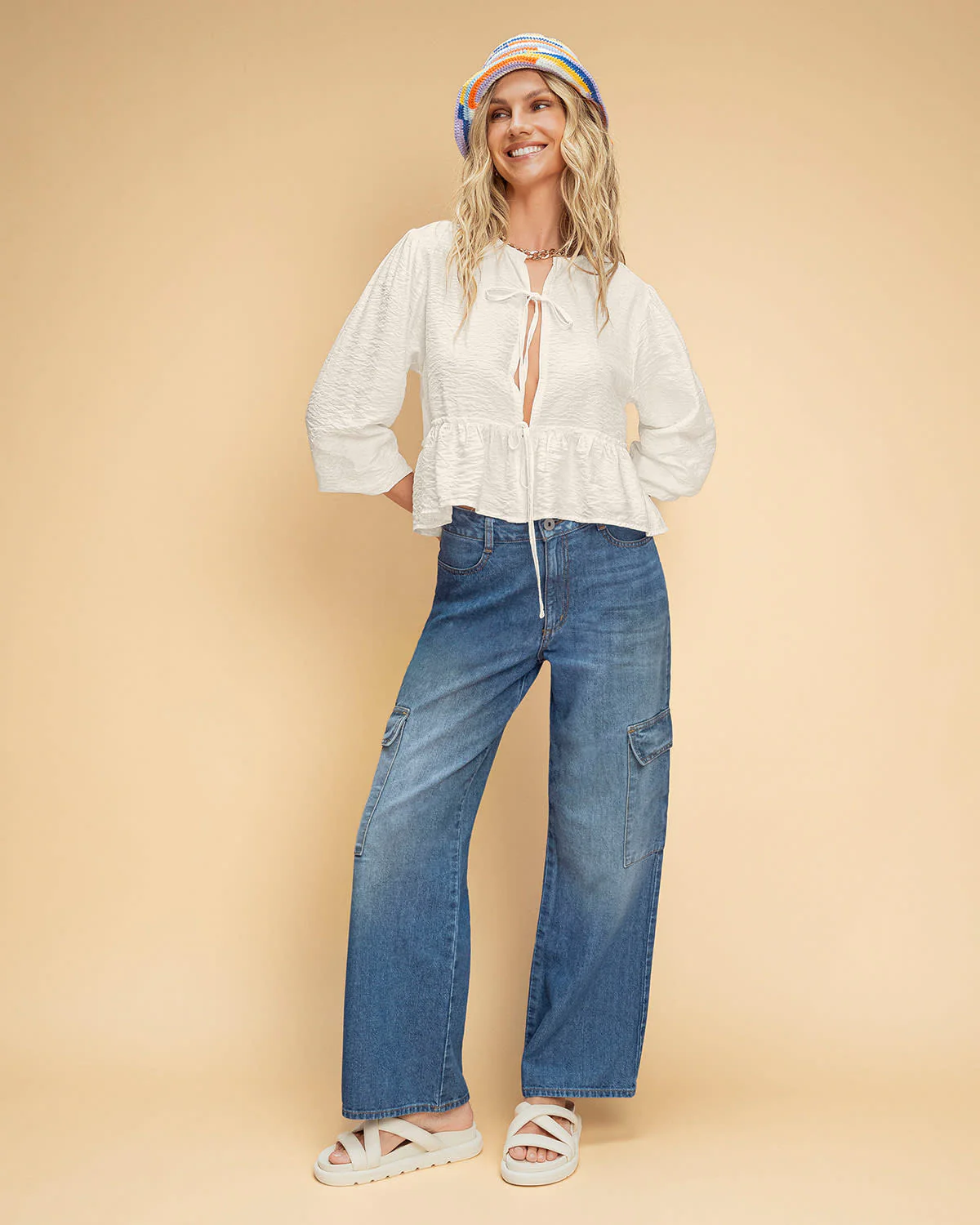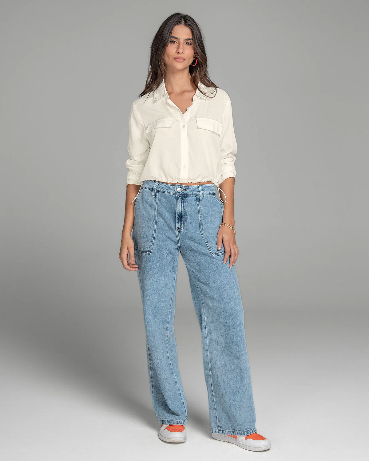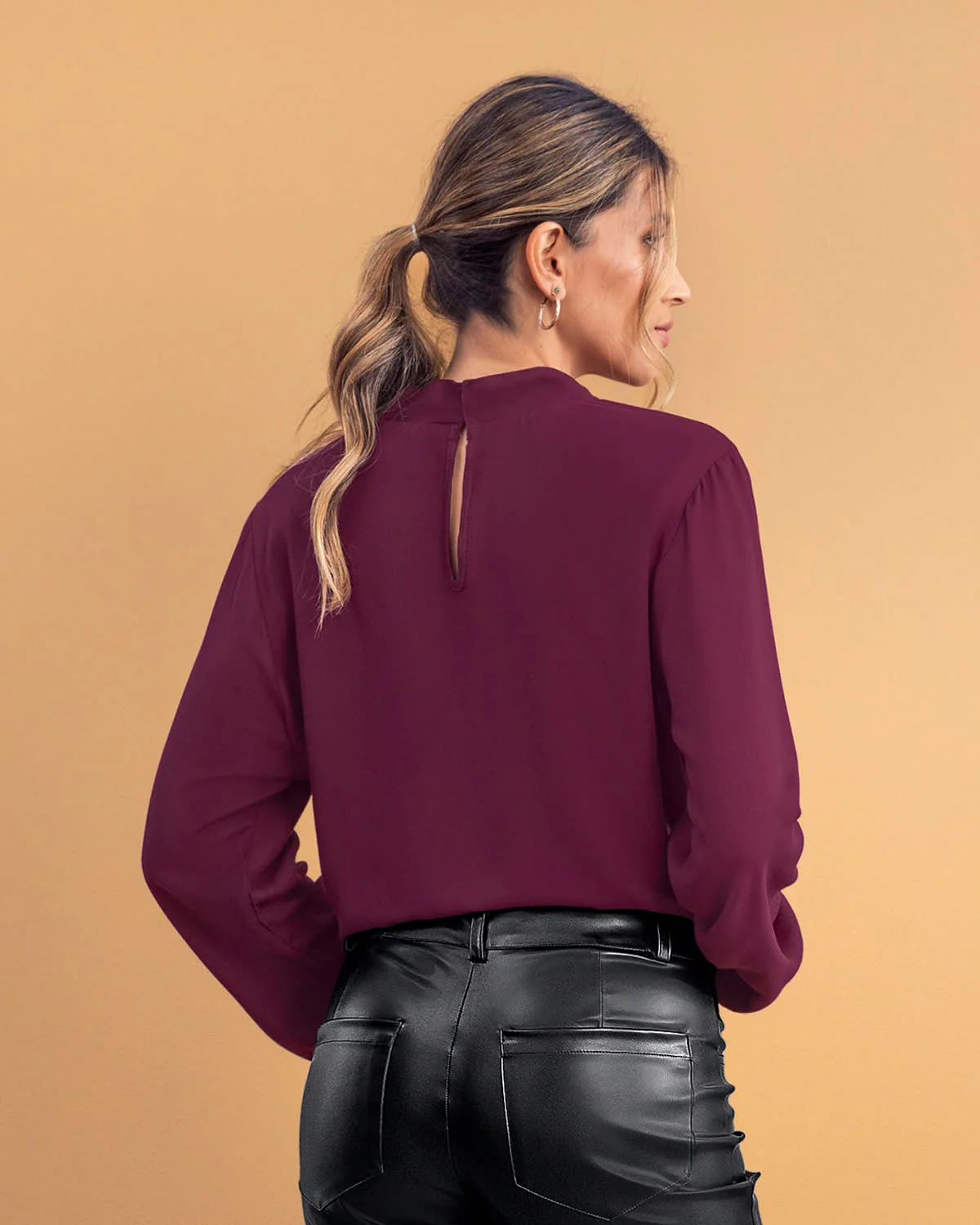 Blusa manga larga con perilla funcional y elástico en ruedo