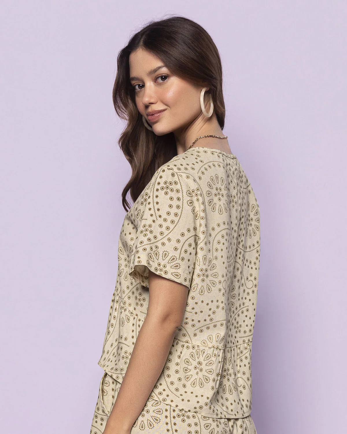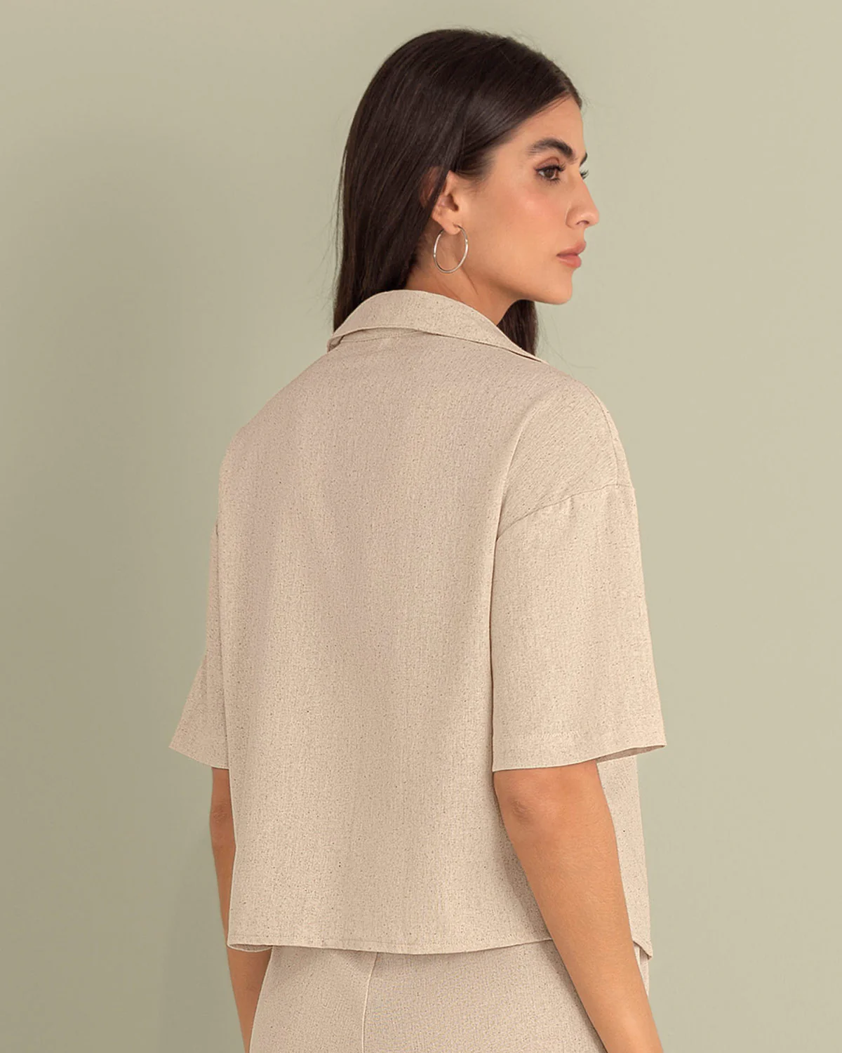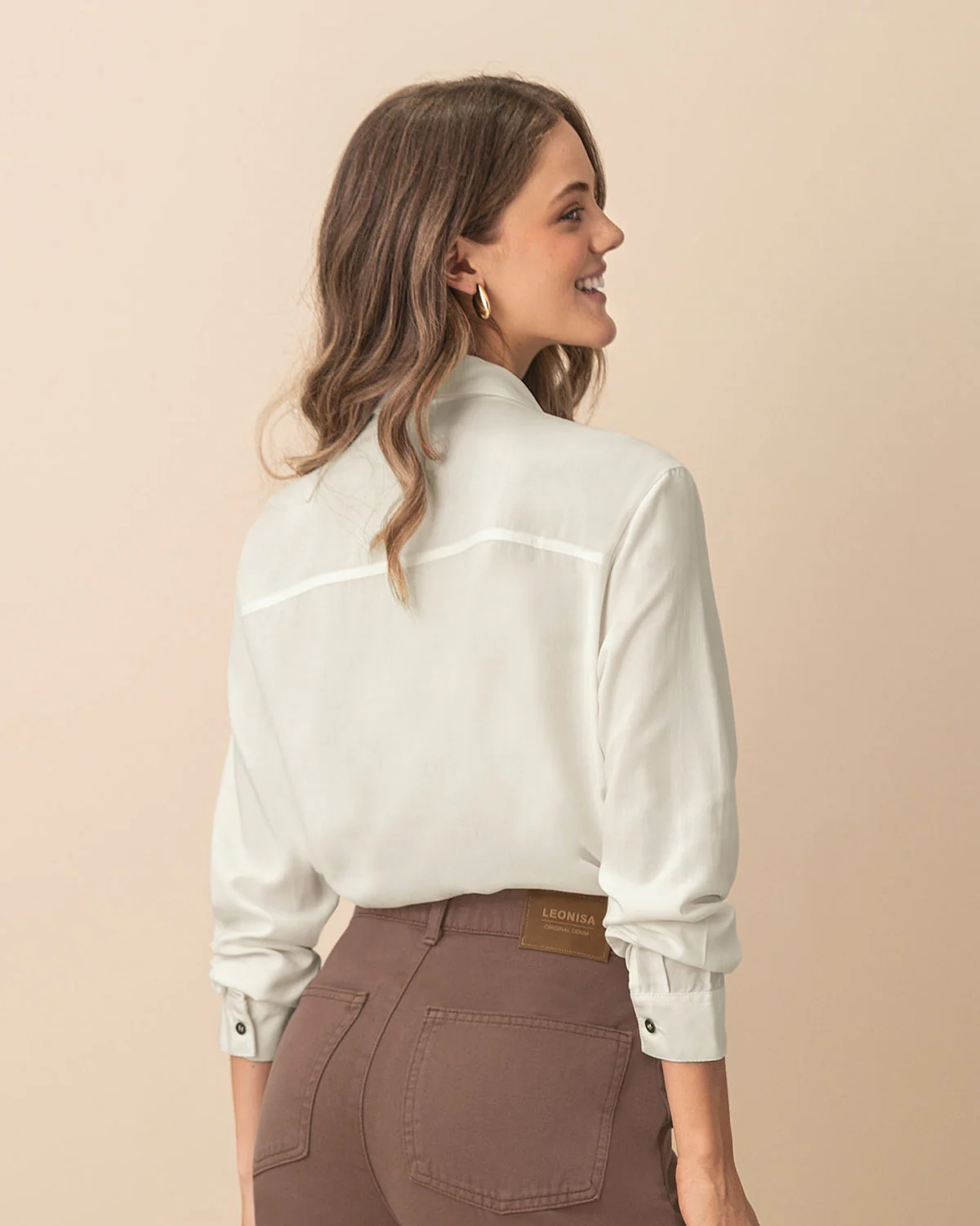 Blusa manga larga con botones funcionales en frente y apliques brillantes