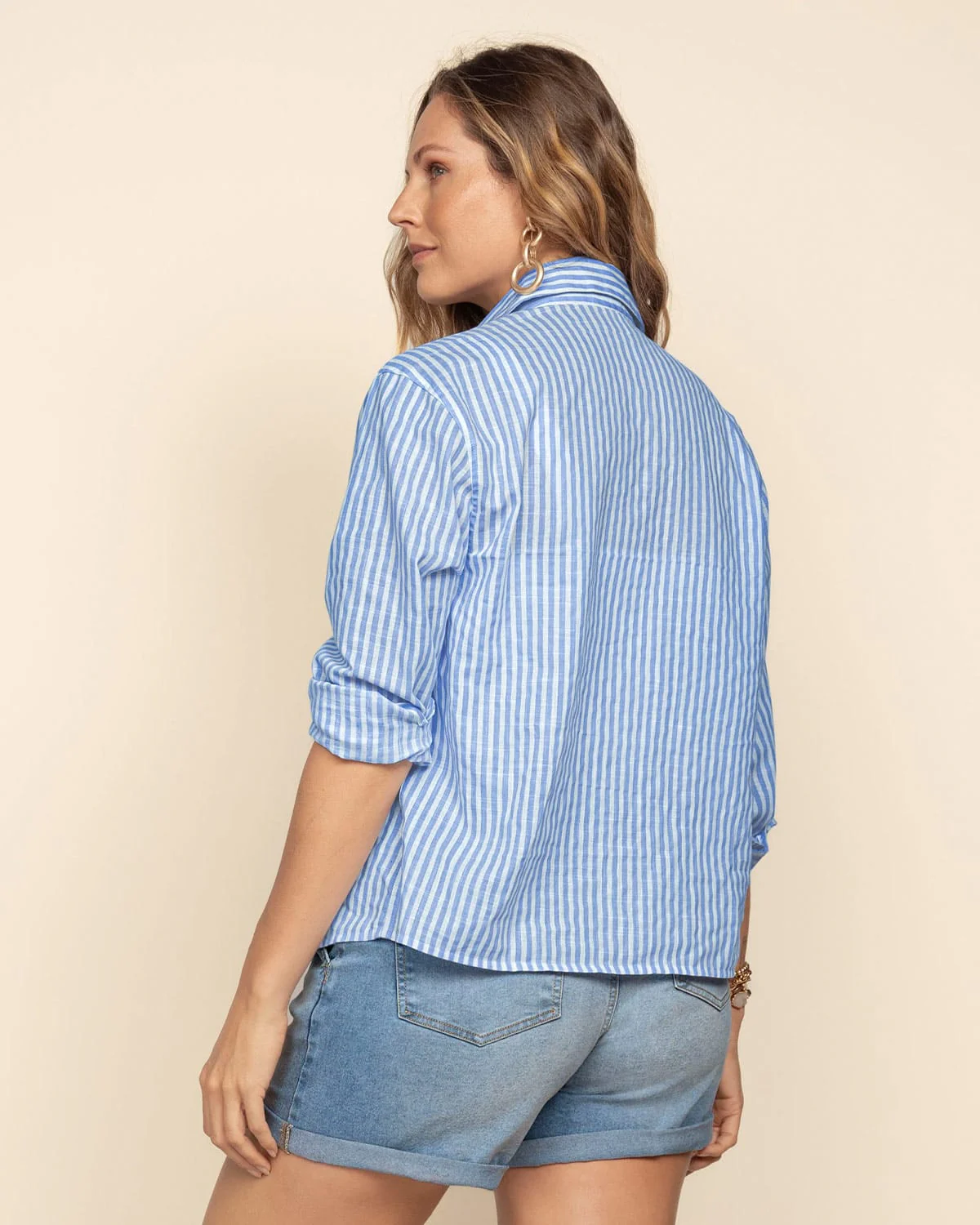 Blusa manga larga de cuello camisero con botones funcionales en frente