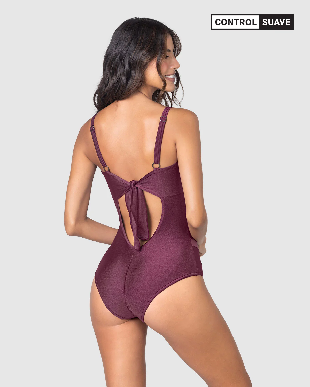 Vestido de baño entero control suave con transparencias y efecto brillo
