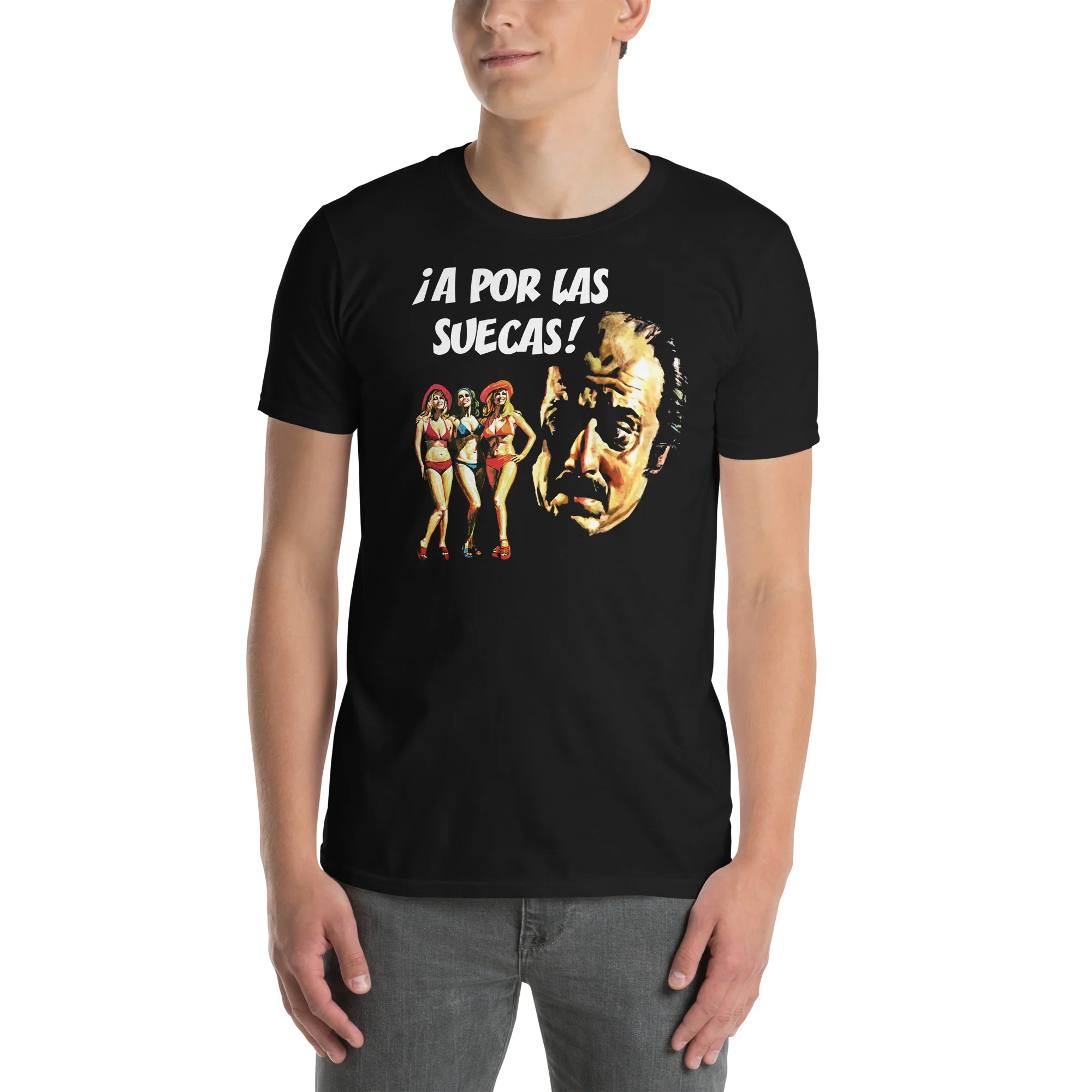 Esta camiseta rinde homenaje a las comedias españolas del «destape», con un diseño que captura la esencia de una época donde el turismo, el humor y la picardía eran los protagonistas. Las libertades que traían las extranjeras en sus maletas apenas se podían imaginar en España.