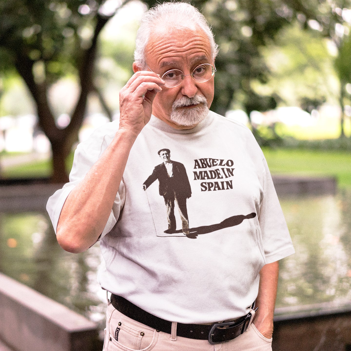 La camiseta Abuelo Made in Spain rinde homenaje a las figuras clásicas de una España auténtica, con el gran Paco Martínez Soria y un diseño minimalista en blanco y negro que combina humor, memoria y estilo vintage.