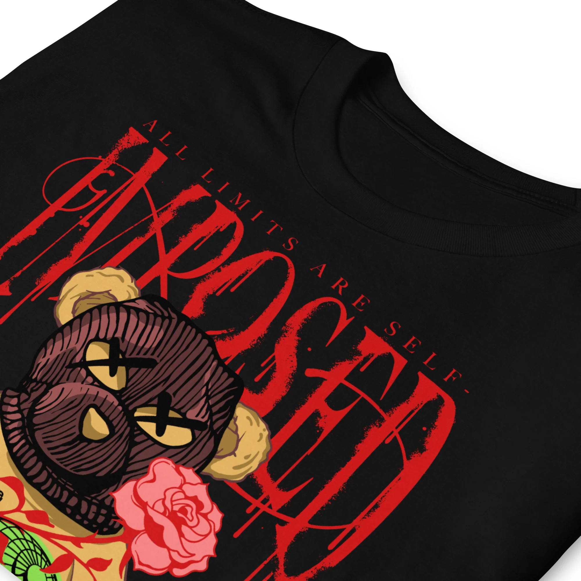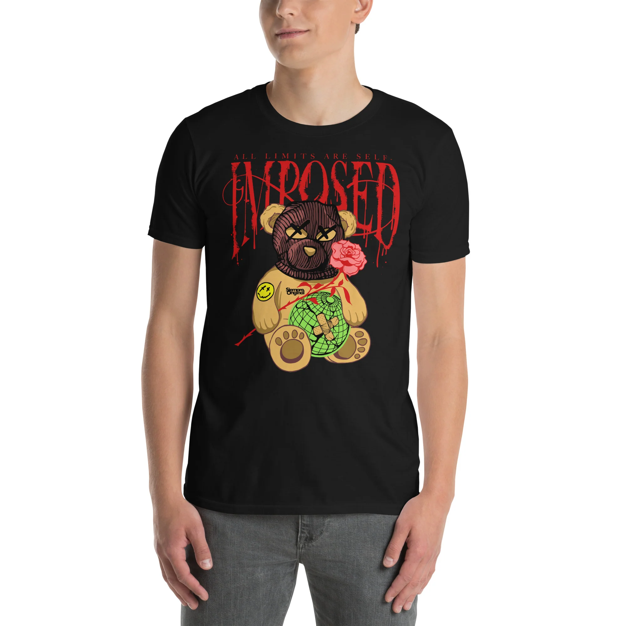 La camiseta All Limits Are Self-Imposed de Siempre Original es un grito visual que desafía las normas. Destaca un tierno pero perturbador teddy bear urbano con pasamontañas, sosteniendo una rosa en color rojo sangre y un globo terráqueo fracturado y con tiritas, como símbolo de lucha, resistencia y crítica social. Con un estilo crudo y gráfico, esta prenda habla de dolor, conciencia y rebelión.