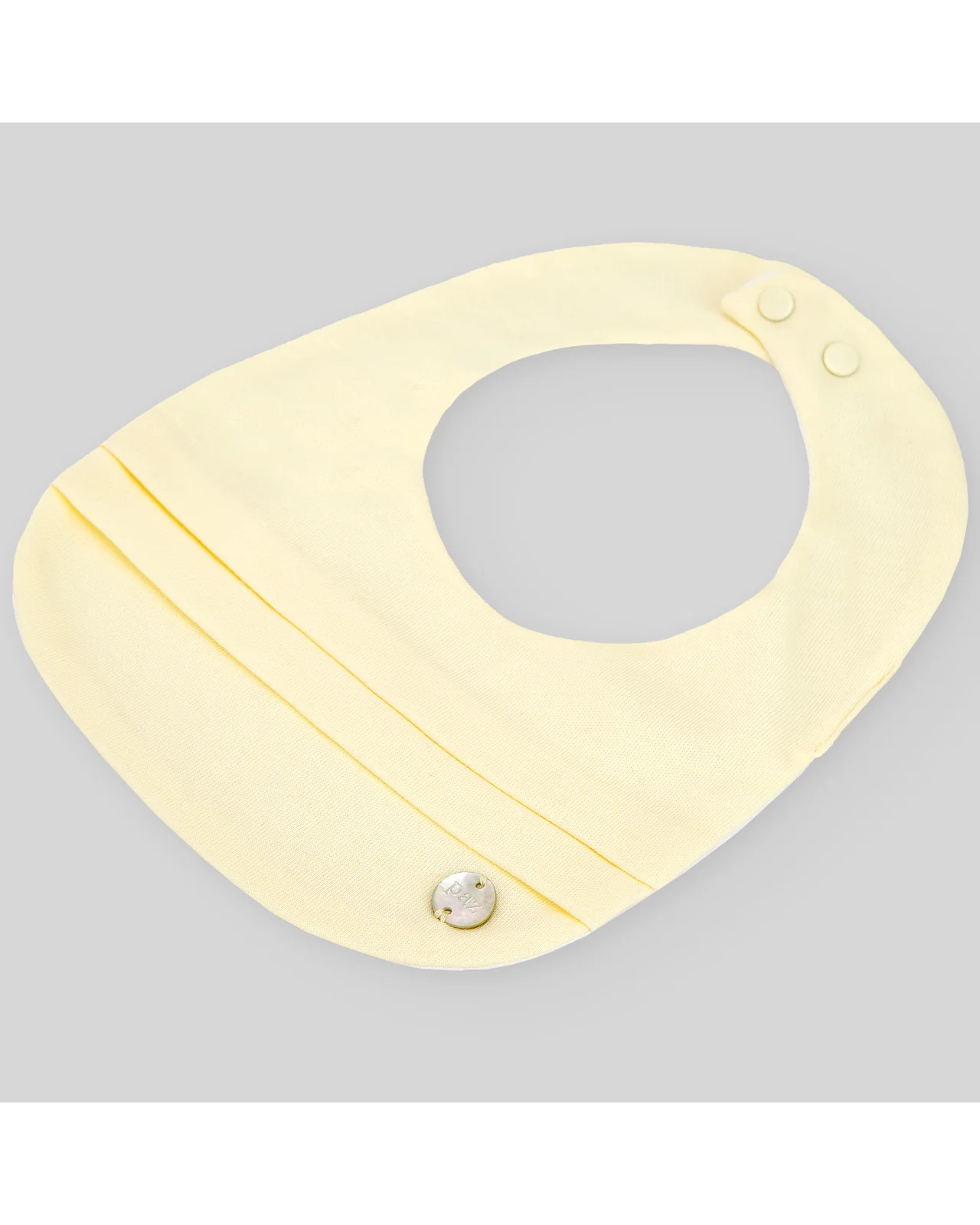 Babero tejido interlock con lorzas. Cierre con broches en cuello.
