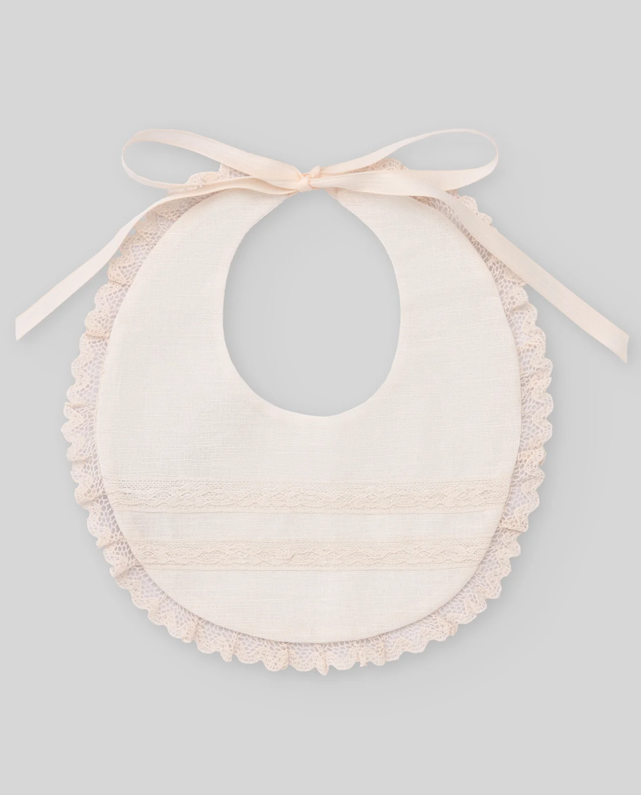 Babero de ceremonia para ocasiones espciales. Fabricado en lino-algodón con remate de puntilla.