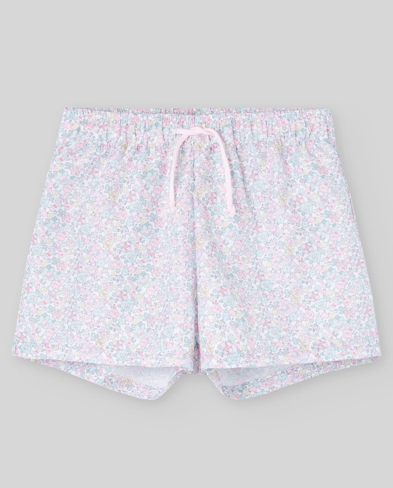 Bañador niño en microfibra estampada con motivo floral tipo liberty con cordón en cintura y goma.