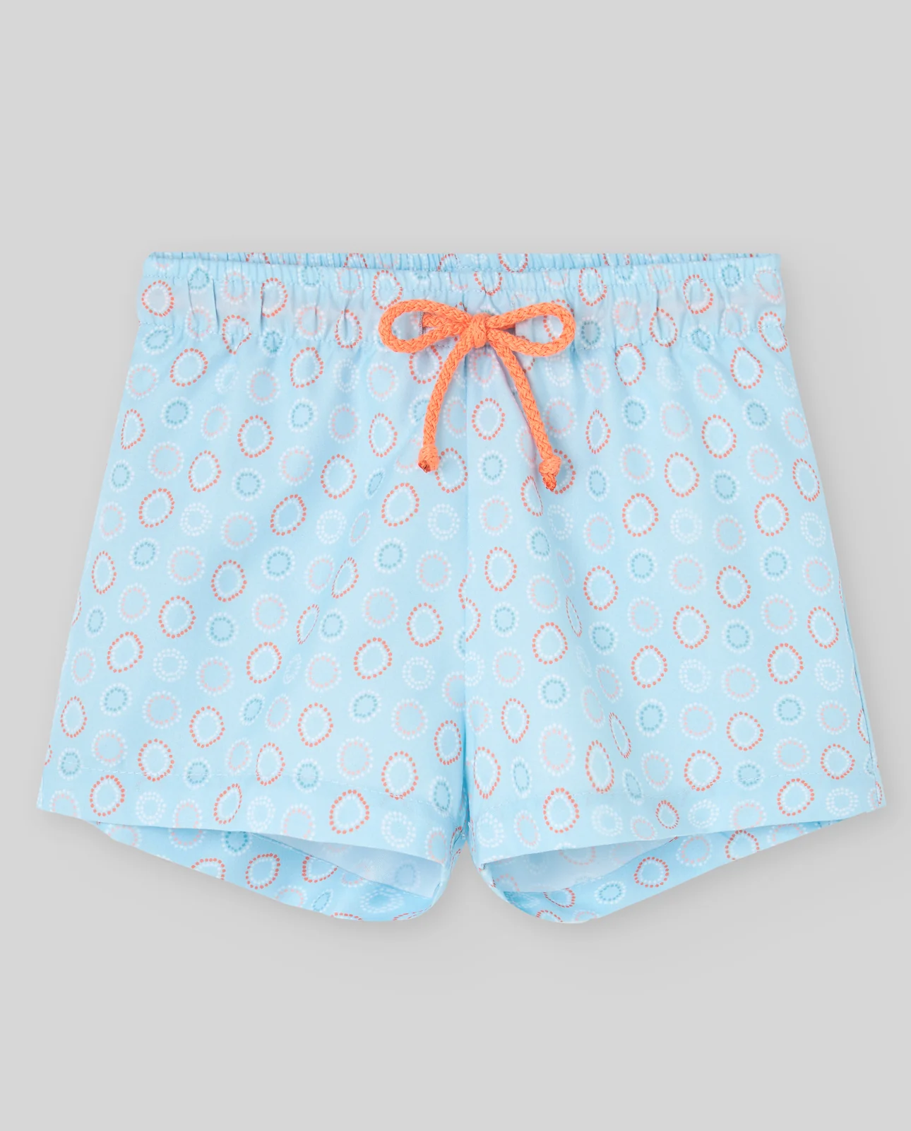 Bañador para niño en microfibra estampada con estampado de flotadores. Cintura elástica y cordón para mayor ajuste. Bolsillo de plastrón en la parte trasera. Tejido con protección solar.