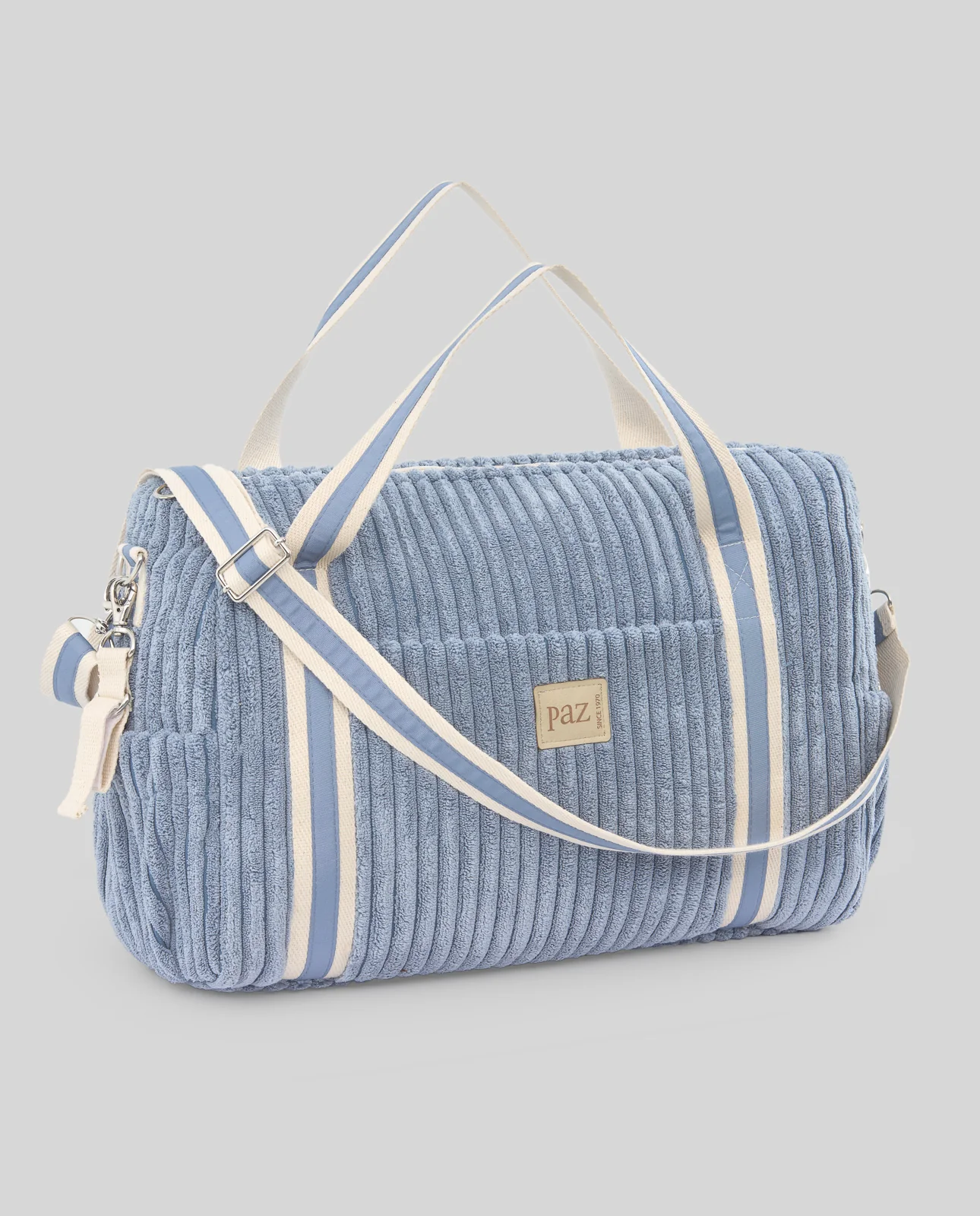 Bolsa bandolera de tamaño medio de pana ancha, lleva dos asas de mano y un asa bandolera, es ideal para colgar en la silla del bebé.