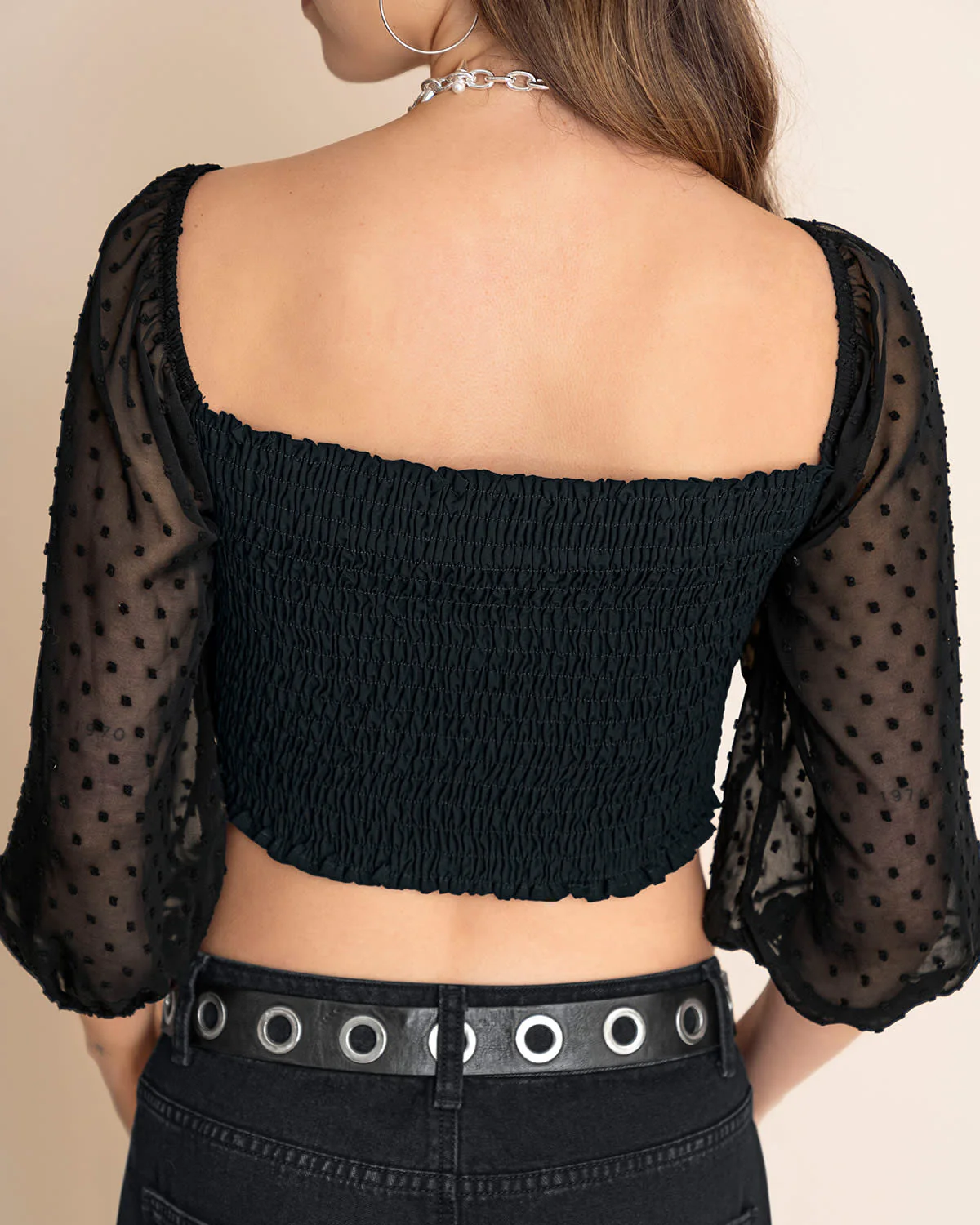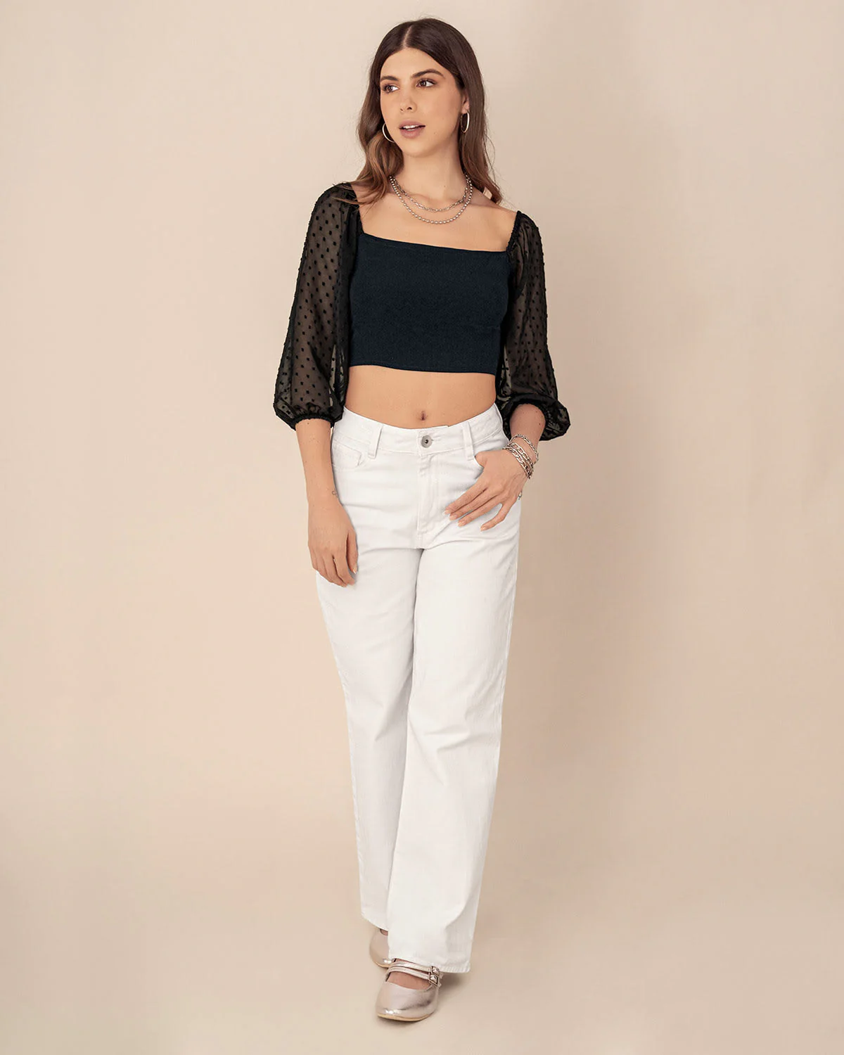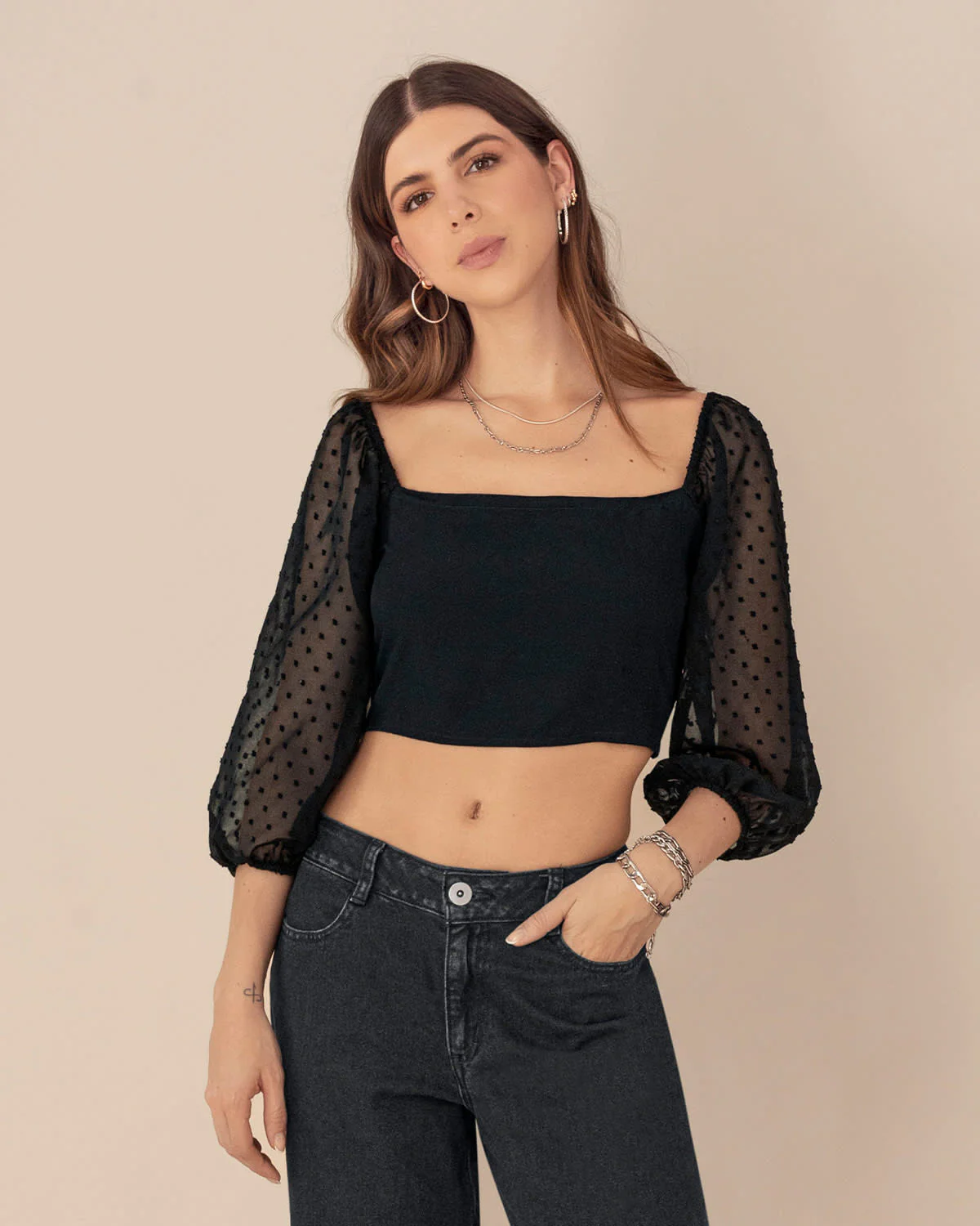 Si hay algo que nos describa a a perfección, es la creatividad a la hora de crear prendas con mucho estilo, y esta blusa manga 3/4 en transparencia con textura no se queda atrás. Nos encanta el equilibrio que logramos al combinar el nido de abeja en espalda y las mangas en tul, ¡son el match perfecto! Y estamos seguras que se verá muy bien en ti. ¡Estilízala con unos jeans tiro alto!