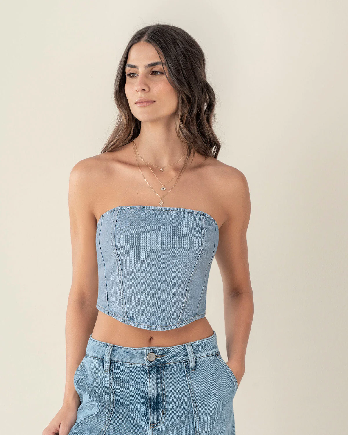 Por blusas strapless como esta ¡es que el denim es nuestro mejor aliado! Únete a la moda de las prendas superiores en este material y ¡brilla con tu autenticidad!