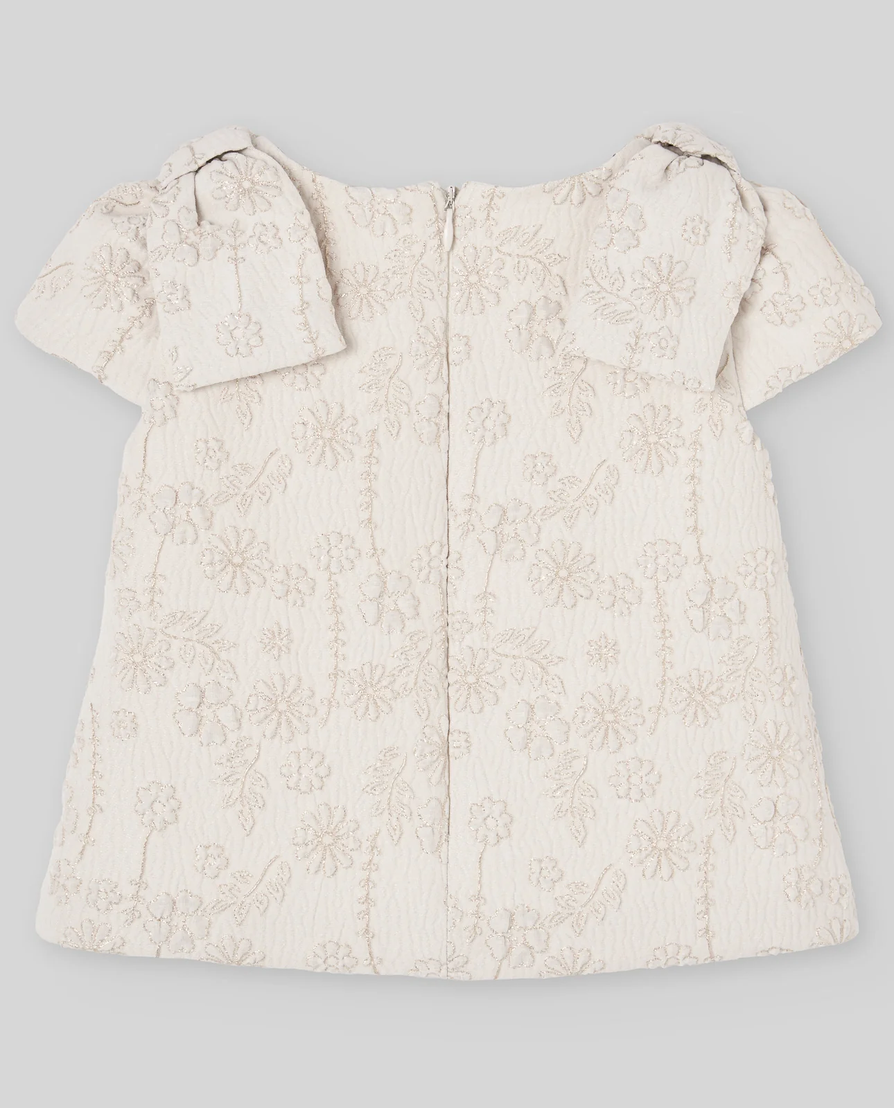 Blusa de invitada a sisa con volantes en jaquard de mariposas con lúrex.