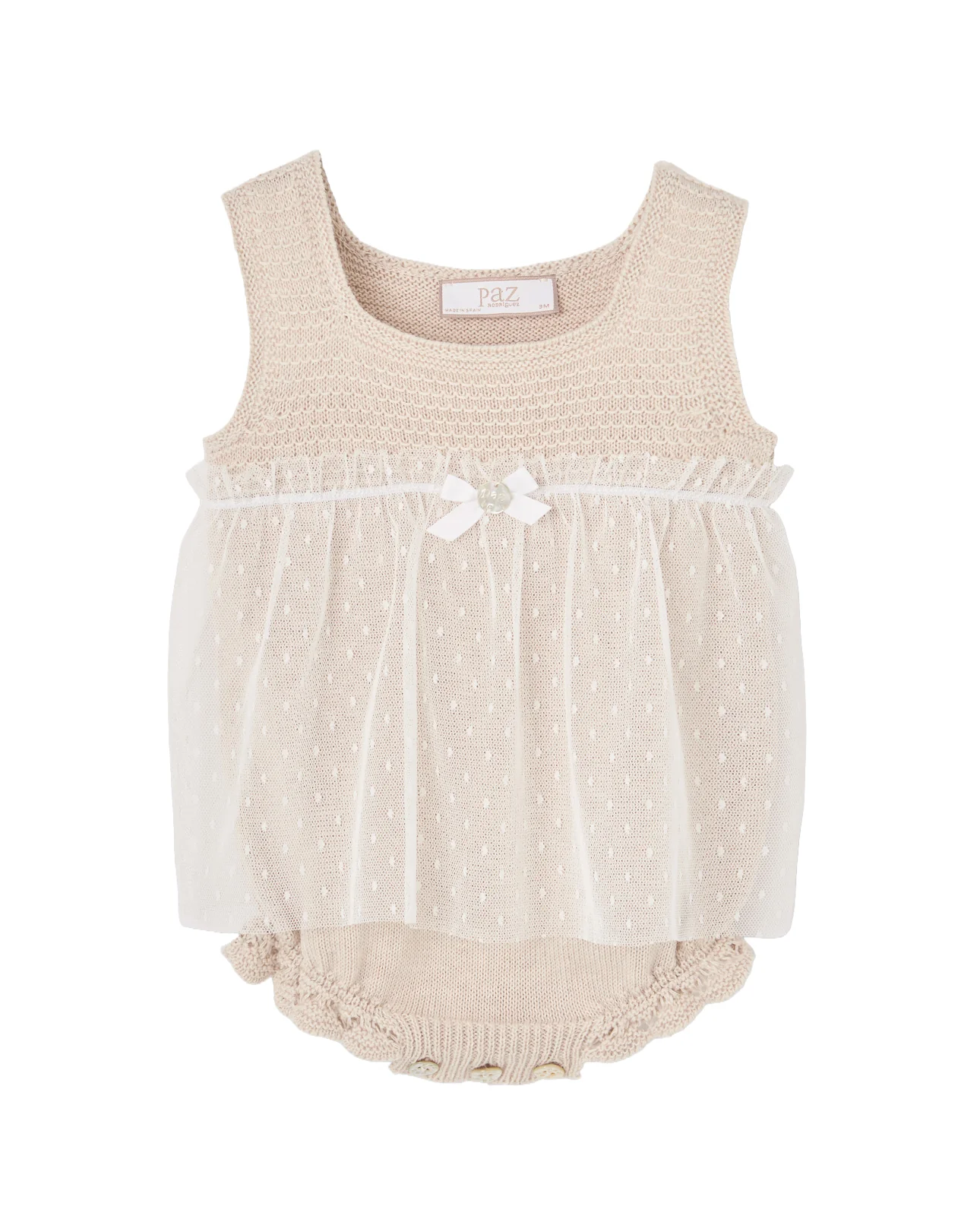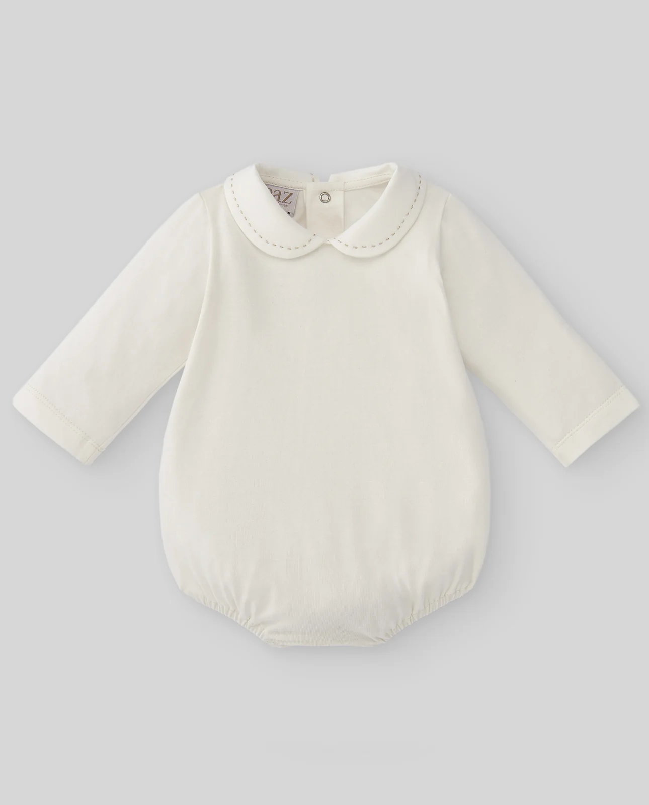 Body de punto circular con cuello punteado y manga larga. Su acabado cuidado y detalles sutiles hacen de él una prenda versátil que se adapta a cualquier conjunto del bebé.