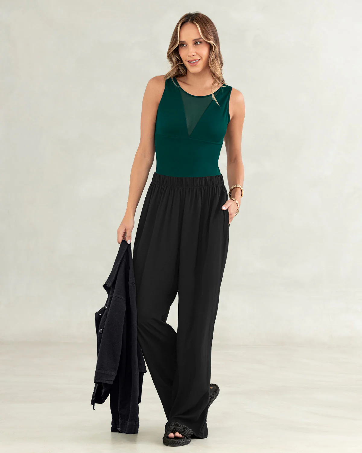 Un body, muchas posibilidades. Su escote profundo en V con detalle de transparencia en tul lo hacen irresistible y versátil, pero lo que más te va a gustar es su control suave en abdomen que resalta tu figura sutilmente, manteniendo siempre la comodidad. Llévalo del día a la noche con simples cambios en tus accesorios, ¡te va a enamorar!