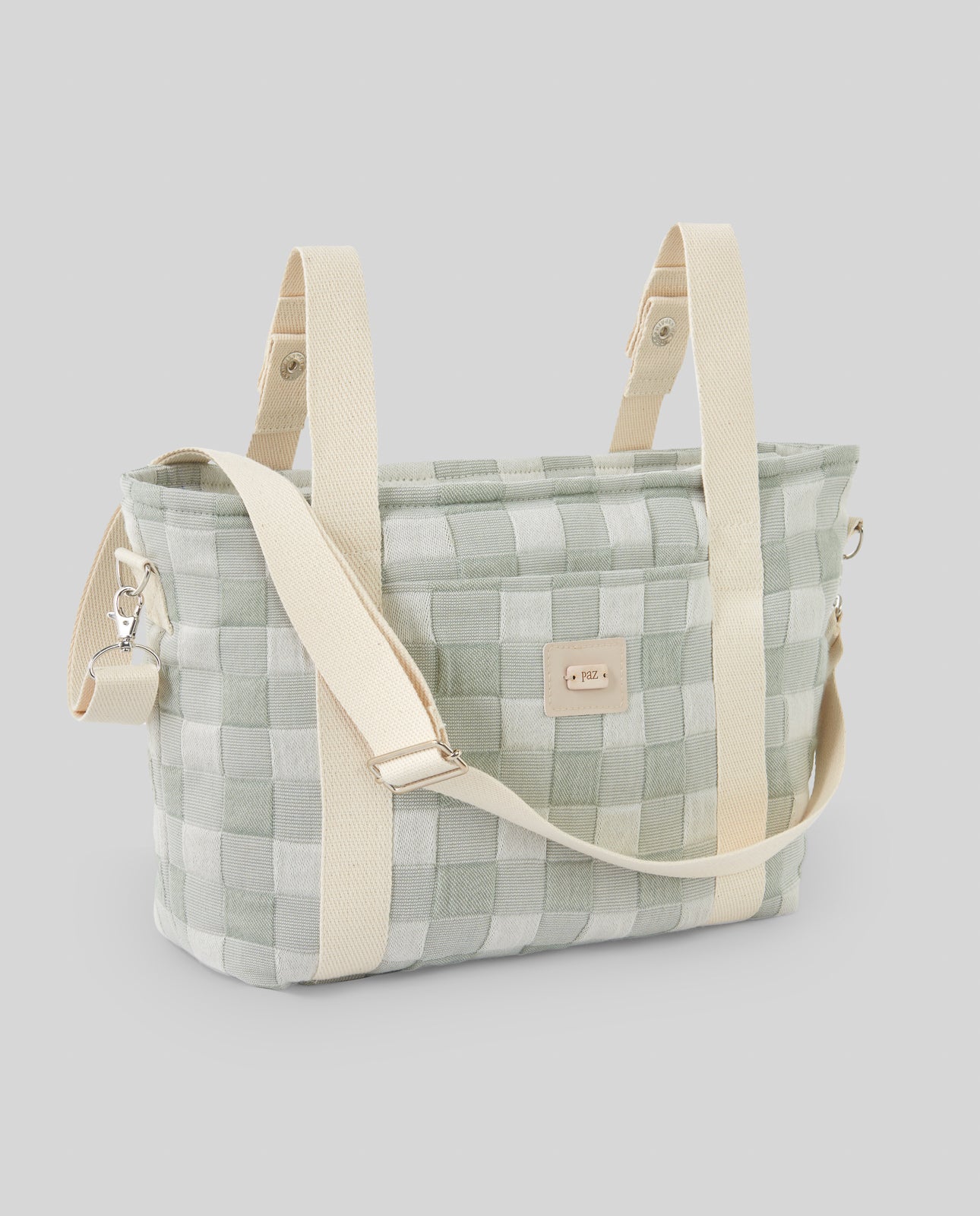 Bolsa silla tamaño medio de jersey-jacquard de cuadros, lleva dos asas para colgar en la silla y un asa bandolera, es ideal para colgar en la silla del bebé.