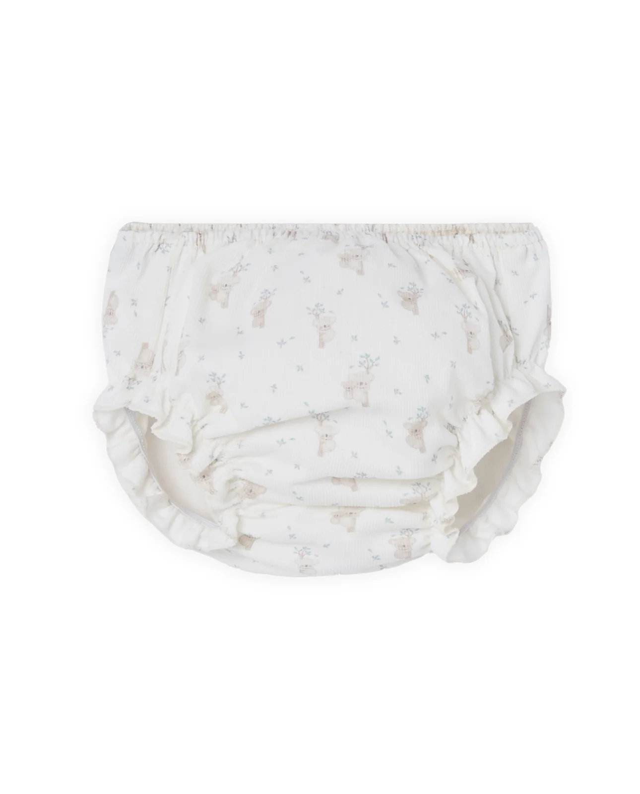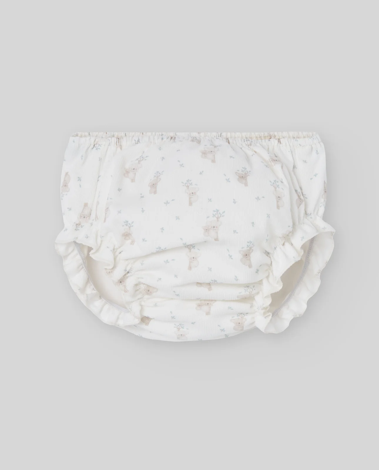 Braga confeccionada en micropana con estampado y volumen definido. Los detalles en cintura y piernas completan un look cálido, ideal para combinar con leotardos en los meses fríos.