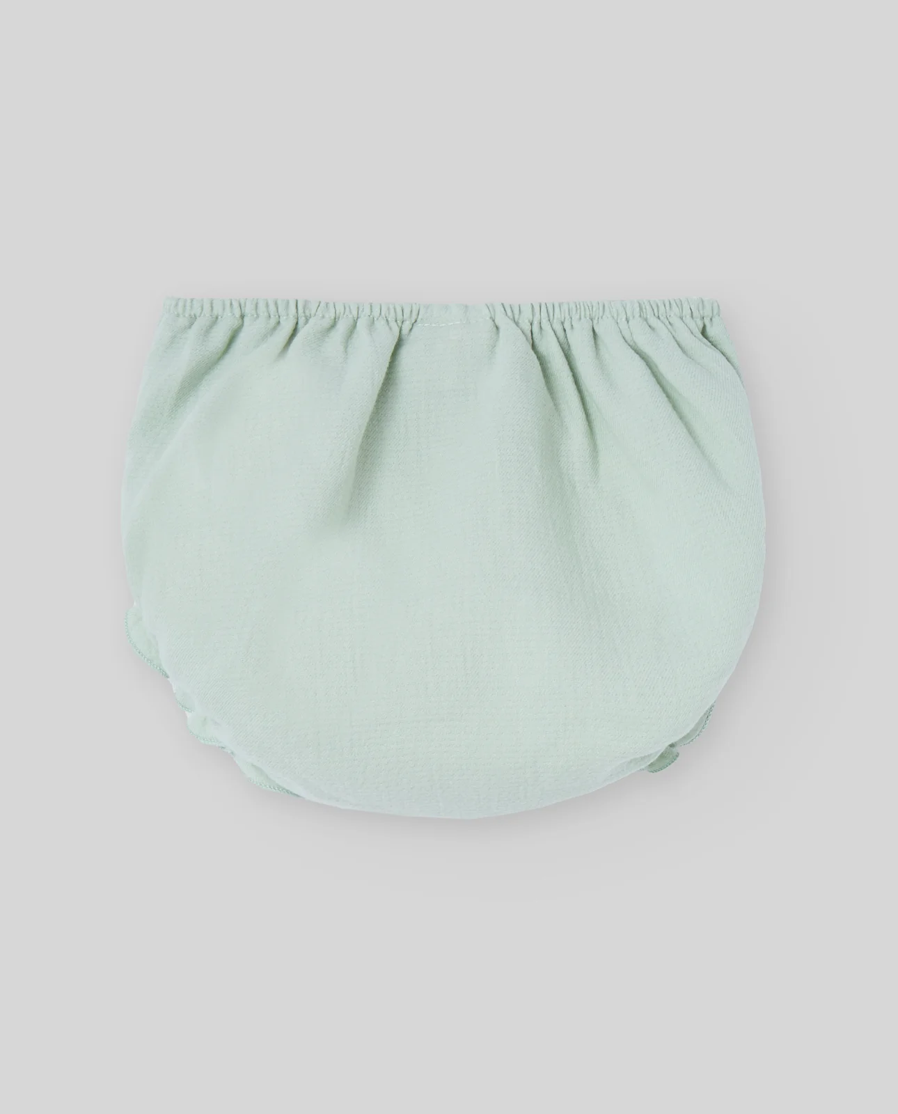 Braga en tejido de topitos, con elástico en la cintura y piernas para mayor confort.