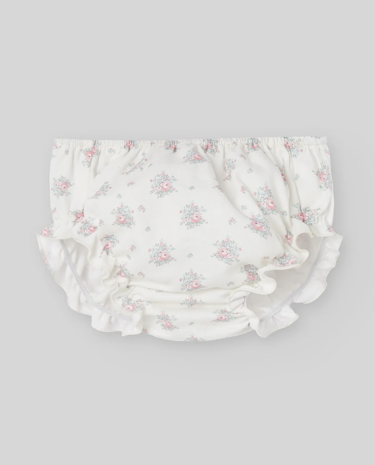 Braga con estampado floral en tejido de textura ligera. El diseño abullonado y la cintura fruncida crean un efecto decorativo muy dulce para estilismos de inspiración romántica.