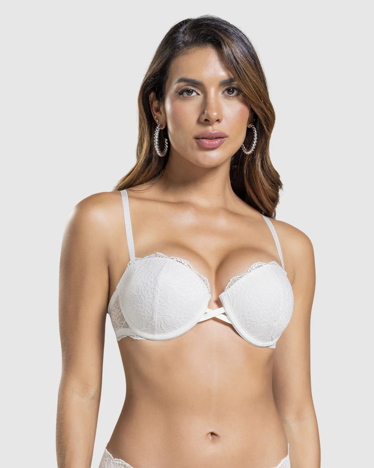 Seducción en cada detalle. Este brasier media copa con realce incorporado será tu favorito para los momentos más románticos o si en el día a día quieres sentirte sexy e imparable. Su espalda es muy delgada y está elaborada completamente en encaje. En el centro del escote tiene unos sesgos cruzados que son ese detalle extra de estilo y romanticismo. Sus cargaderas son graduables y removibles en espalda y su abrochadura cuenta con 2 broches y 3 ajustes.