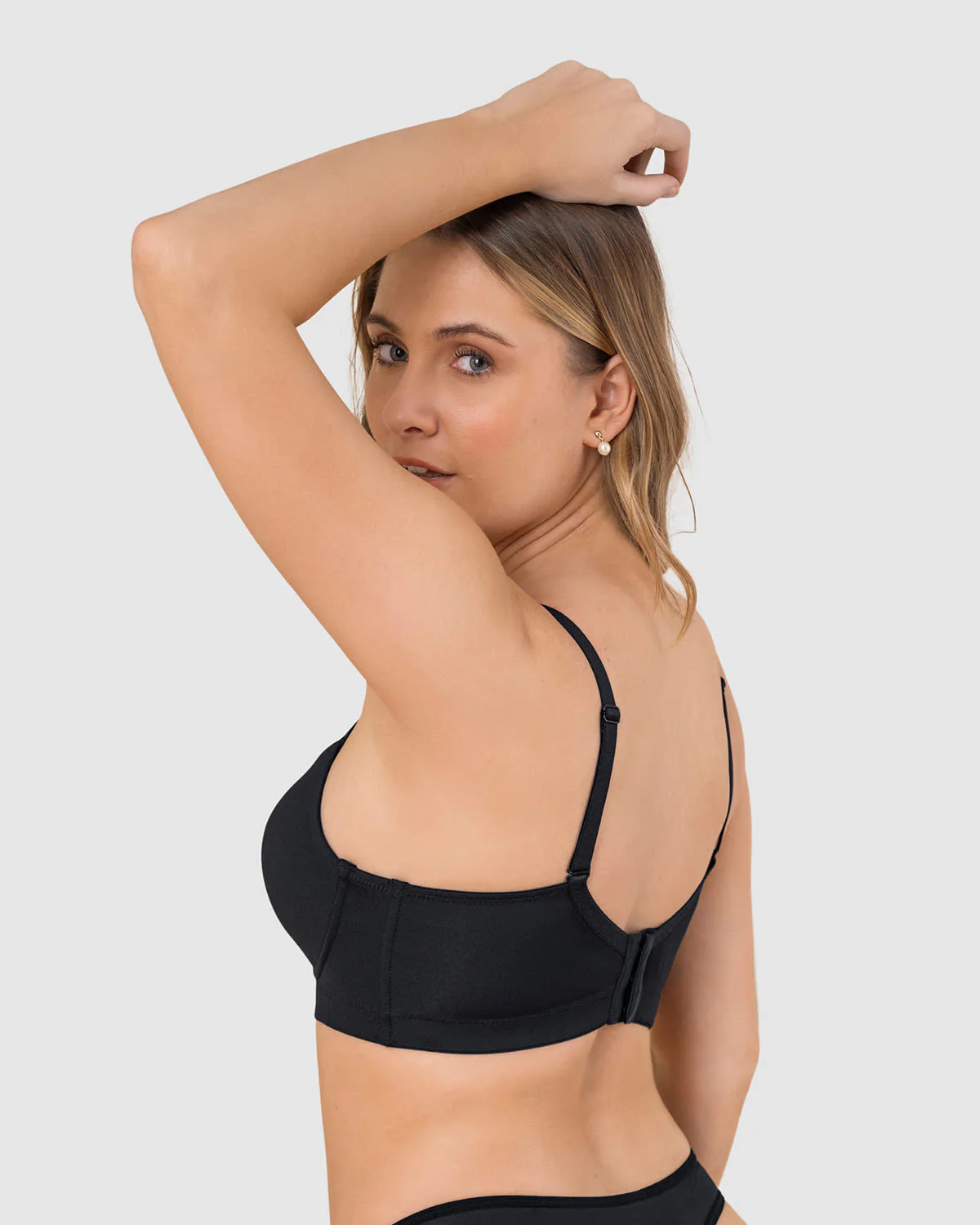 Este brasier te va a encantar, porque es ideal para tu día a día ya que te hará sentir muy cómoda y segura. Es triangular copa completa de buen cubrimiento, con arcos internos y varillas laterales. Sus copas en espuma suave y liviana, le dan un realce suave a tu busto y se adaptan a su forma, brindándote una modelación mucho más natural. En la base cuenta con un elástico ancho que brinda mayor soporte y ajuste. La espalda es ancha de buen cubrimiento para disimular los rollitos de esta zona.
