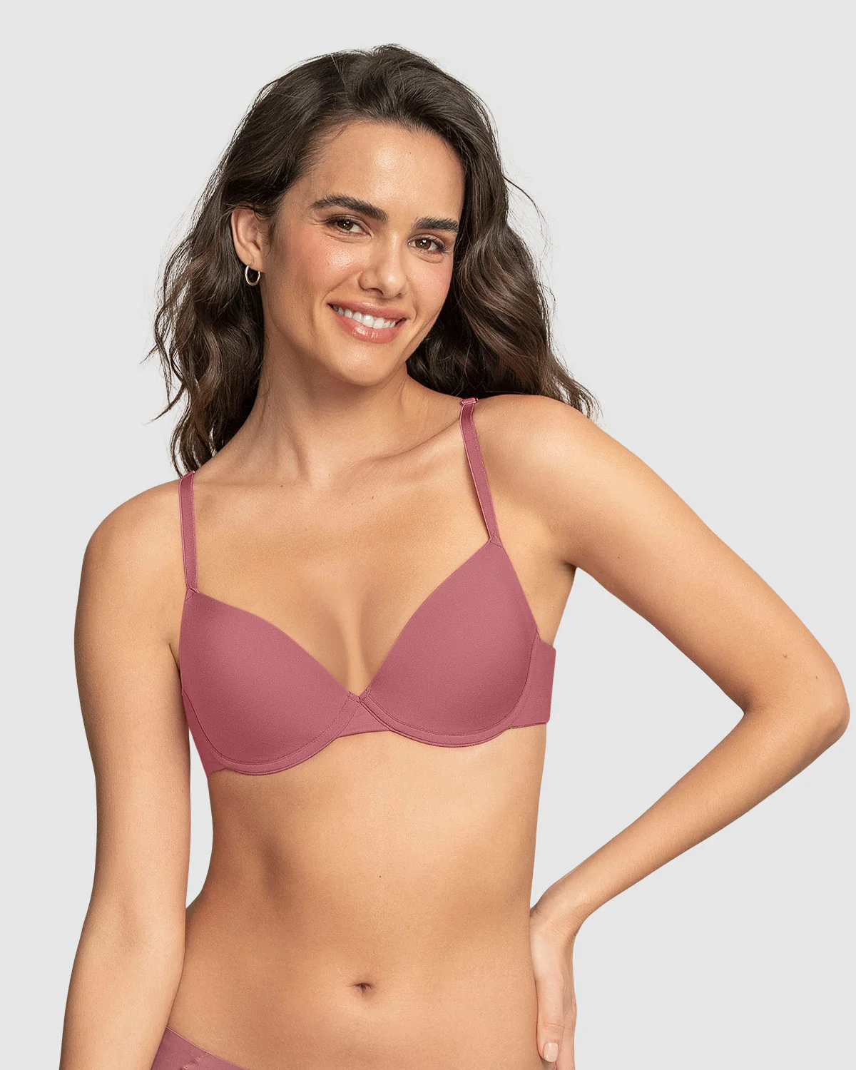 Una silueta que no puede faltar en tu ropa interior ¡un t-shirt bra! Es decir, un brasier de copas lisas que genera un look muy limpio bajo tu ropa. Sus copas están elaboradas en espuma prehormada fija muy suave al tacto, que le dan una forma más redondeada a tu busto. Es perfecto para busto pequeño o mediano y su diseño de arco libre, sin estructuras adicionales en la base, es ese toque de tendencia y ligereza que tanto te gusta en tu bra. Su espalda delgada de 2 broches y 4 ajustes, es muy elástica. Cuenta con cargaderas removibles en espalda para que las uses de forma convencional o cruzada.