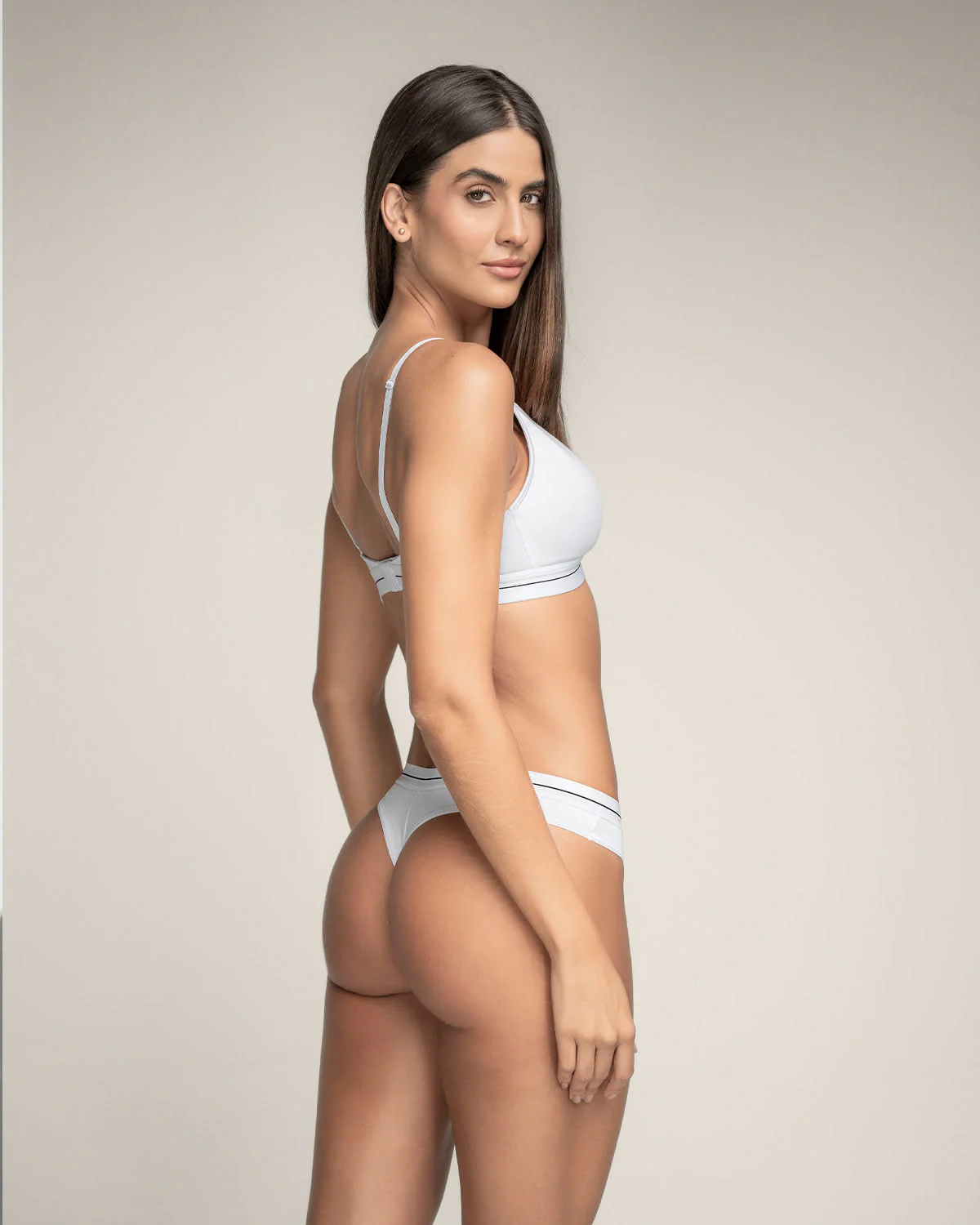 Esta brasilera de tiro medio con elástico en cintura es de muy buen ajuste. Su apariencia es fresca, descomplicada y muy cool. Está elaborada con algodón por lo que es muy suave al tacto y su refuerzo inferior también está elaborado en algodón para ser delicado con tu zona íntima ¡La sensación de libertad que te da una brasilera, es lo que hace que sea la silueta favorita de muchas!