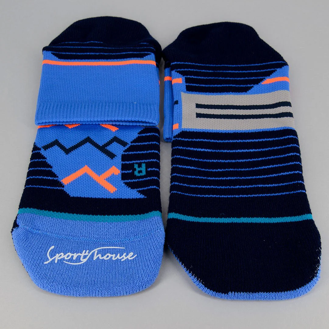 -Los calcetines técnicos Kylie Crazy diseñados y marcados «L/R» (izquierda-derecha), están confeccionados para ceñirse a la planta, empeine y tobillo sin comprimir pero ofreciendo sujeción y transpirabilidad. Por esto tienen zonas de mayor elasticidad y otras con mayor densidad de gramaje, protegiendo el pie en las zonas de mayor impacto y desgaste.