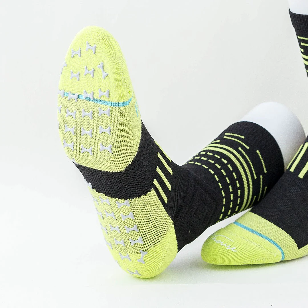 -Los calcetines técnicos Kylie Crazy diseñados y marcados «L/R» (izquierda-derecha), están confeccionados para ceñirse a la planta, empeine y tobillo sin comprimir pero ofreciendo sujeción y transpirabilidad. Por esto tienen zonas de mayor elasticidad y otras con mayor densidad de gramaje, protegiendo el pie en las zonas de mayor impacto y desgaste.