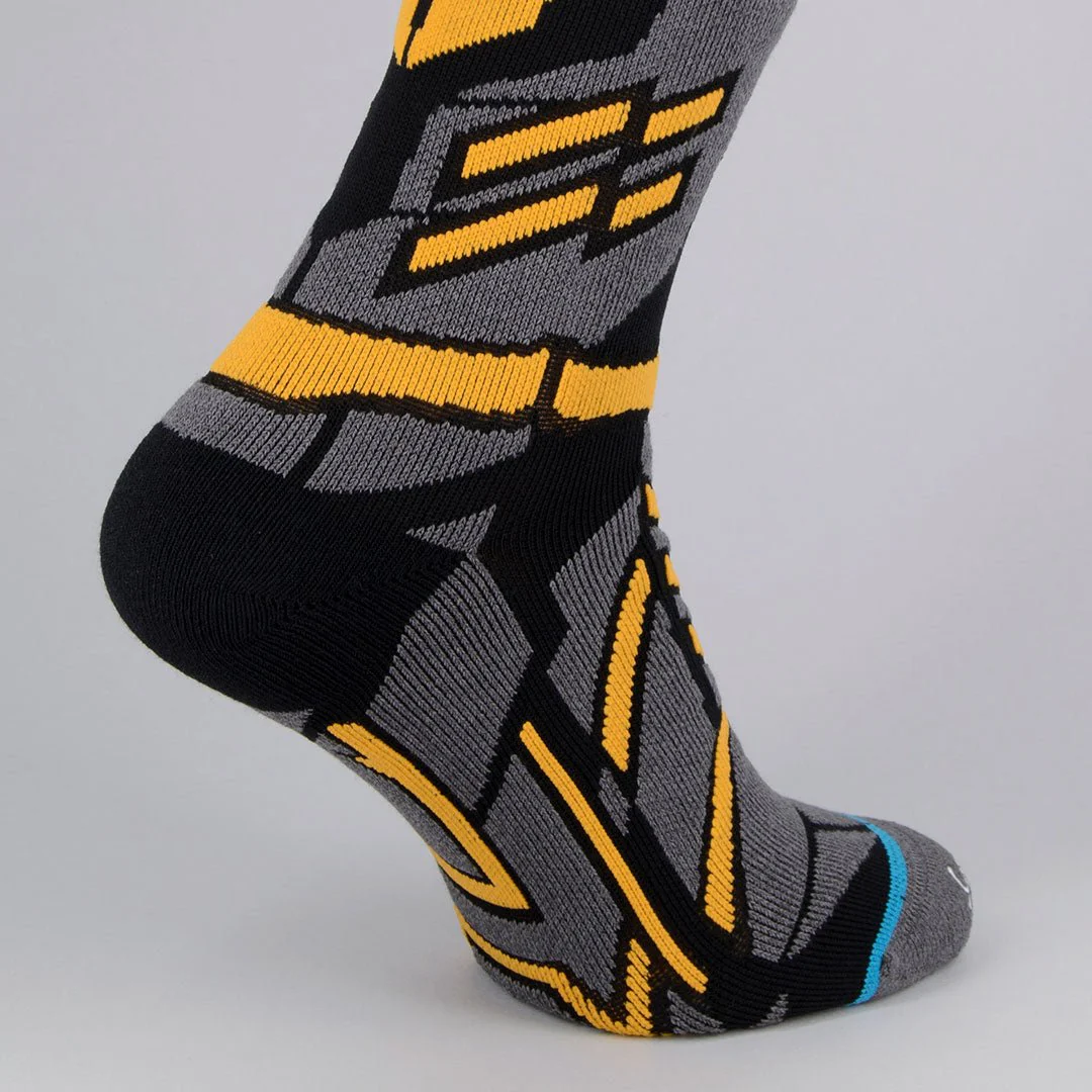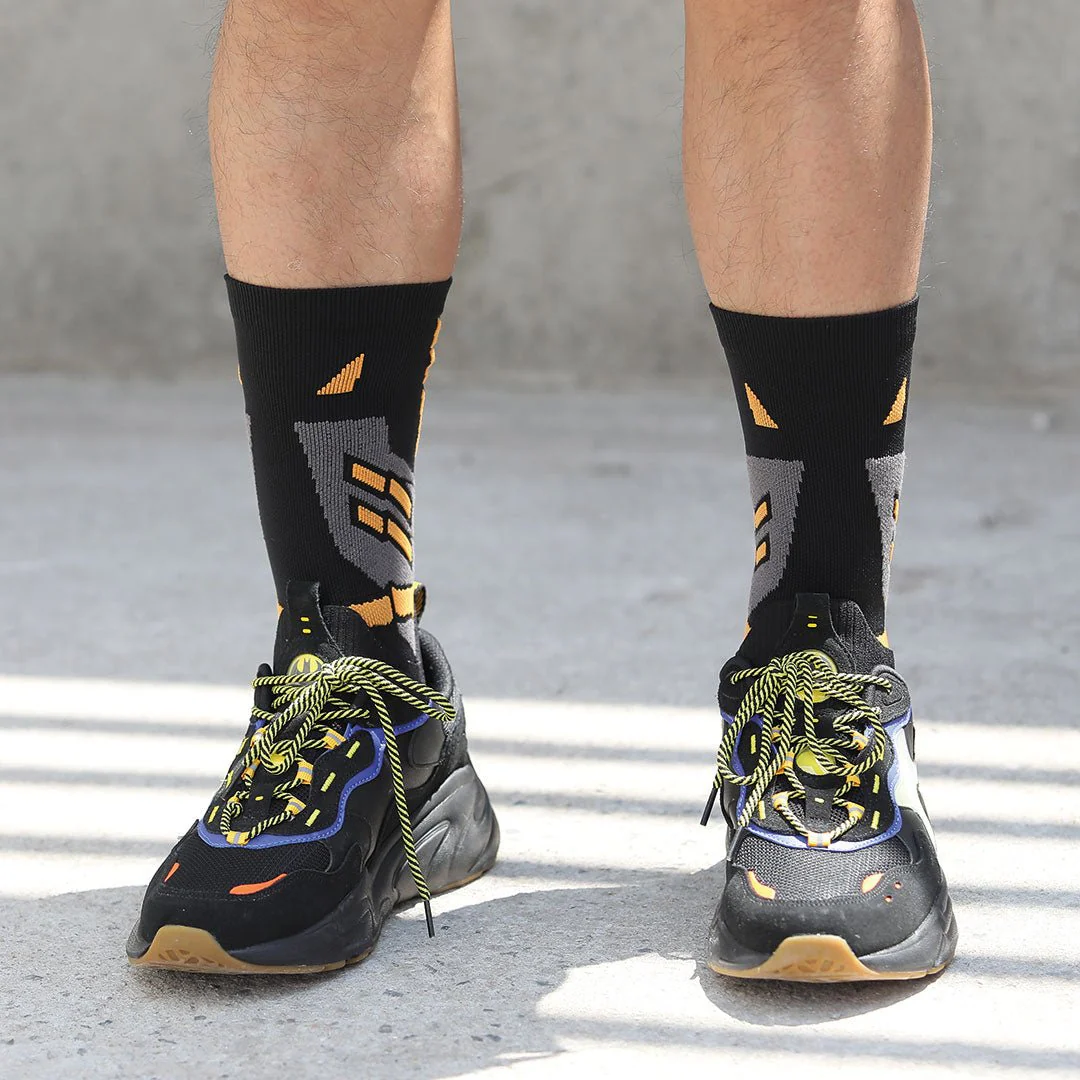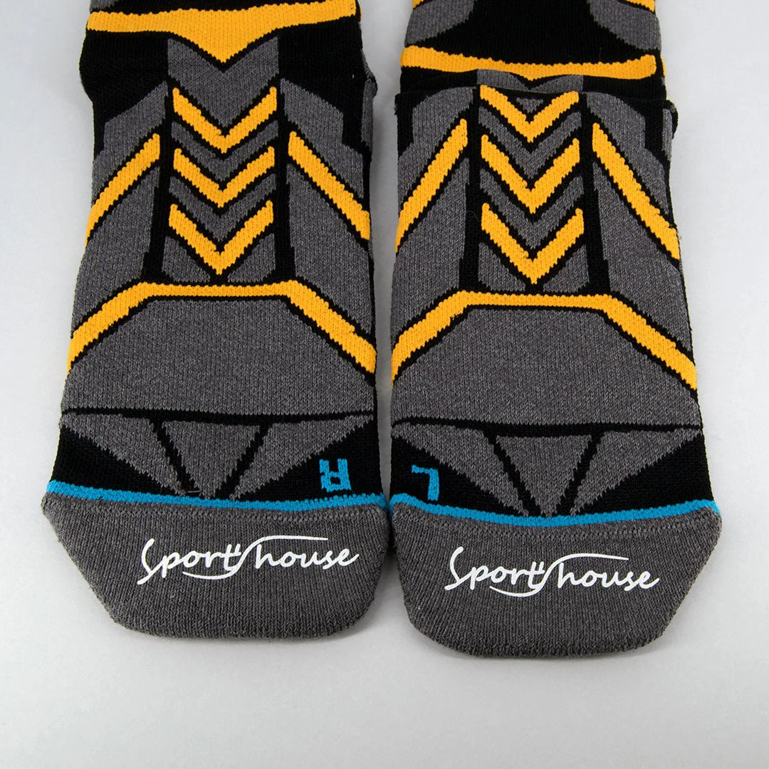 -Los calcetines técnicos Kylie Crazy diseñados y marcados «L/R» (izquierda-derecha), están confeccionados para ceñirse a la planta, empeine y tobillo sin comprimir pero ofreciendo sujeción y transpirabilidad. Por esto tienen zonas de mayor elasticidad y otras con mayor densidad de gramaje, protegiendo el pie en las zonas de mayor impacto y desgaste.