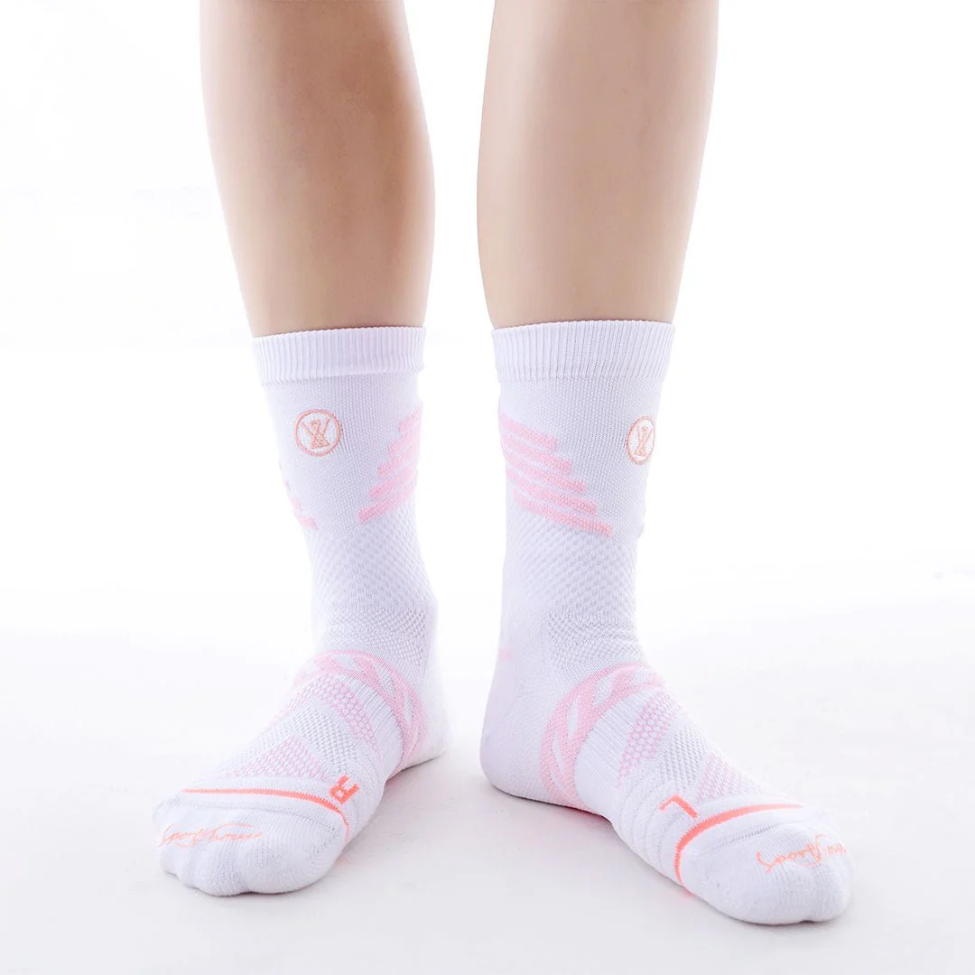 -Los calcetines compresivos Kylie Crazy diseñados y marcados «L/R» (izquierda-derecha), están confeccionados para ceñirse a la planta, empeine y tobillo sin comprimir pero ofreciendo sujeción y transpirabilidad. Úsalos para cualquiera de tus deportes favoritos, tus pies te lo agradecerán.