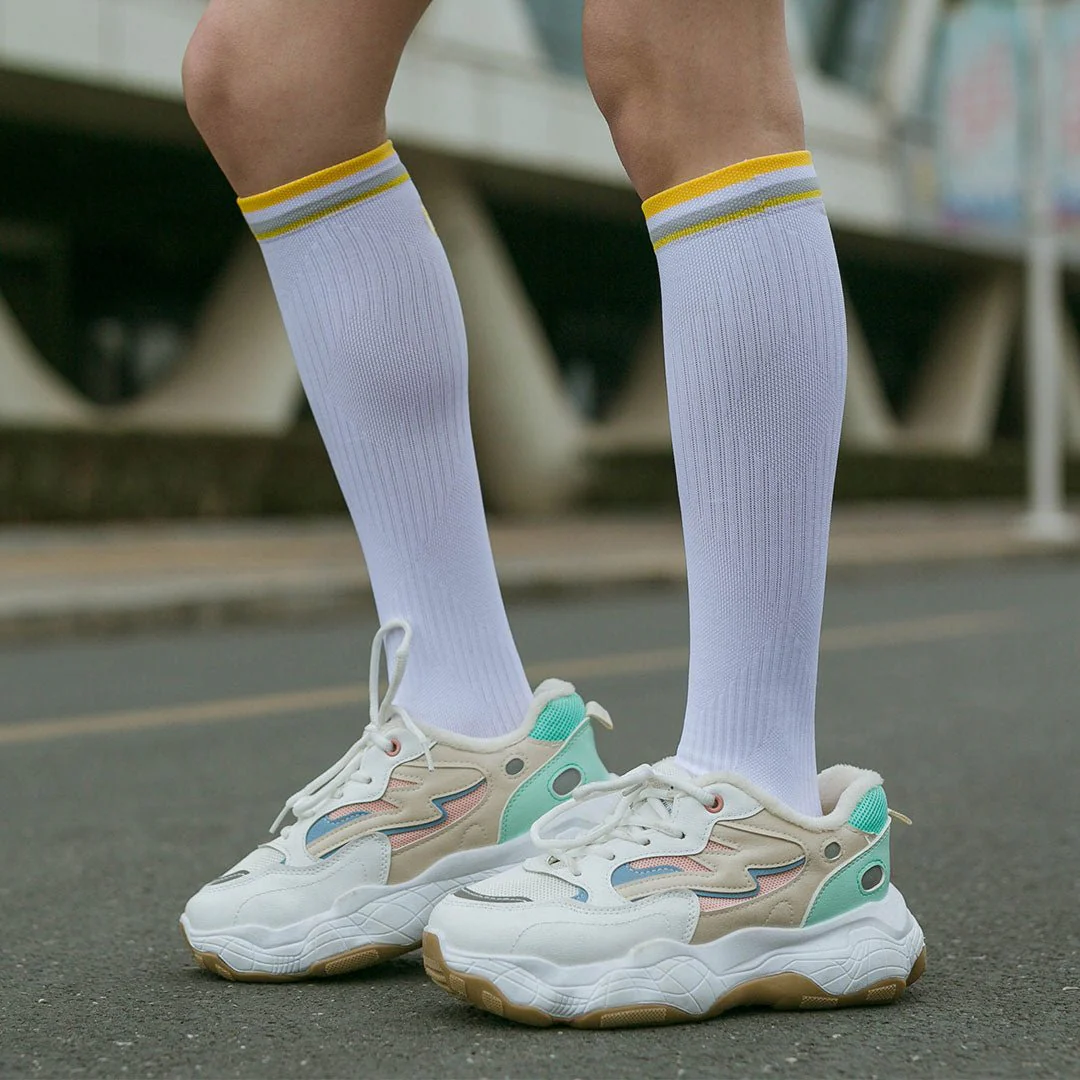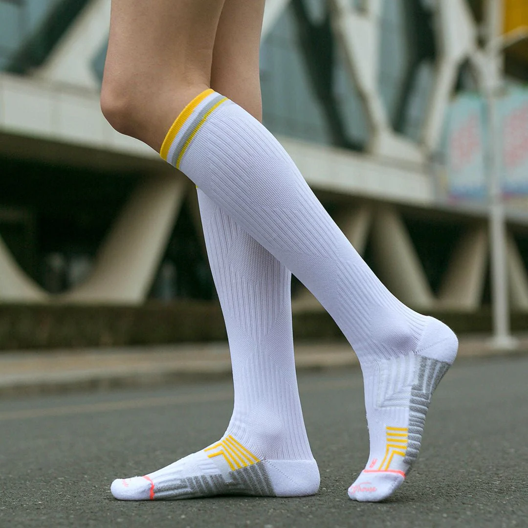 Calcetines Deportivos Técnicos Largos de Compresión Anatómicos. Color Blanco