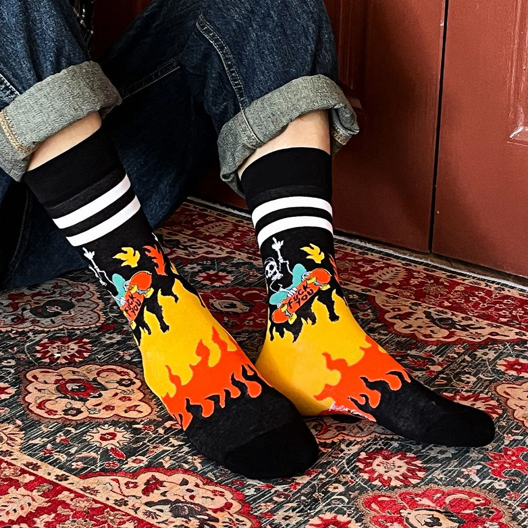 Su lema: patina rápido, vive libre, arde fuerte 💀⚡.