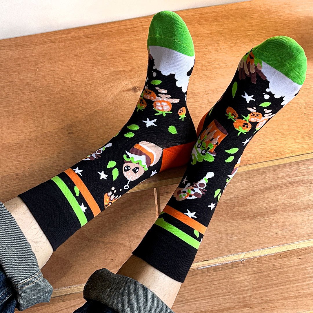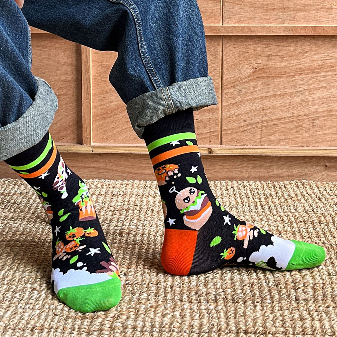 Su lema: cuando el hambre aprieta… ¡que tus calcetines respondan! 🍟😎