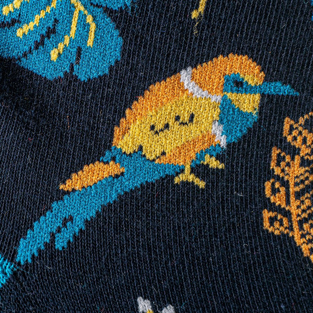 Calcetines invisibles en colores negro y azul con motivos de aves. Confeccionados con algodón peinado de alta calidad. Ideal para temperaturas templadas. Se únic@ y diferente.