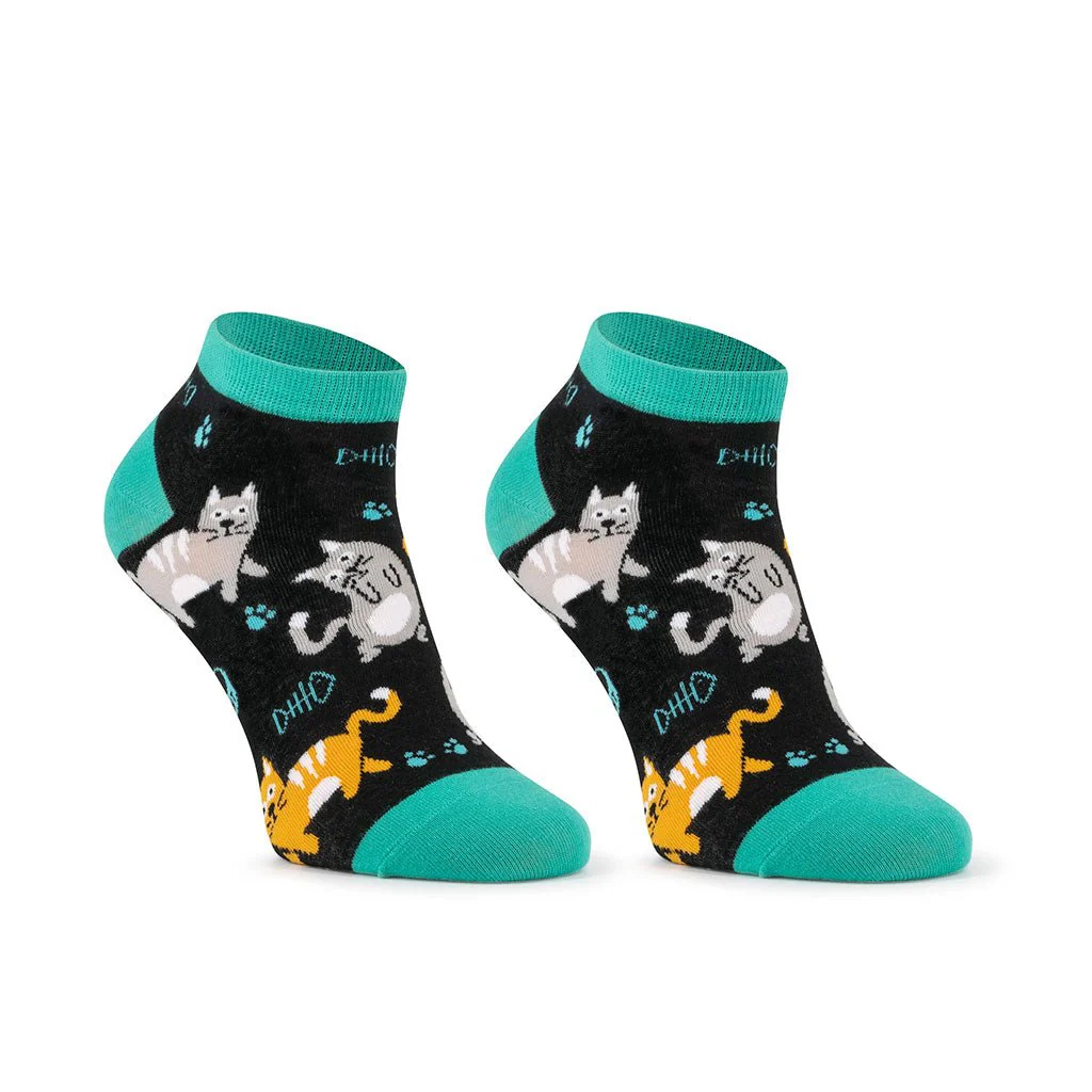 Calcetines tobilleros divertidos de algodón GATO ESMERALDA