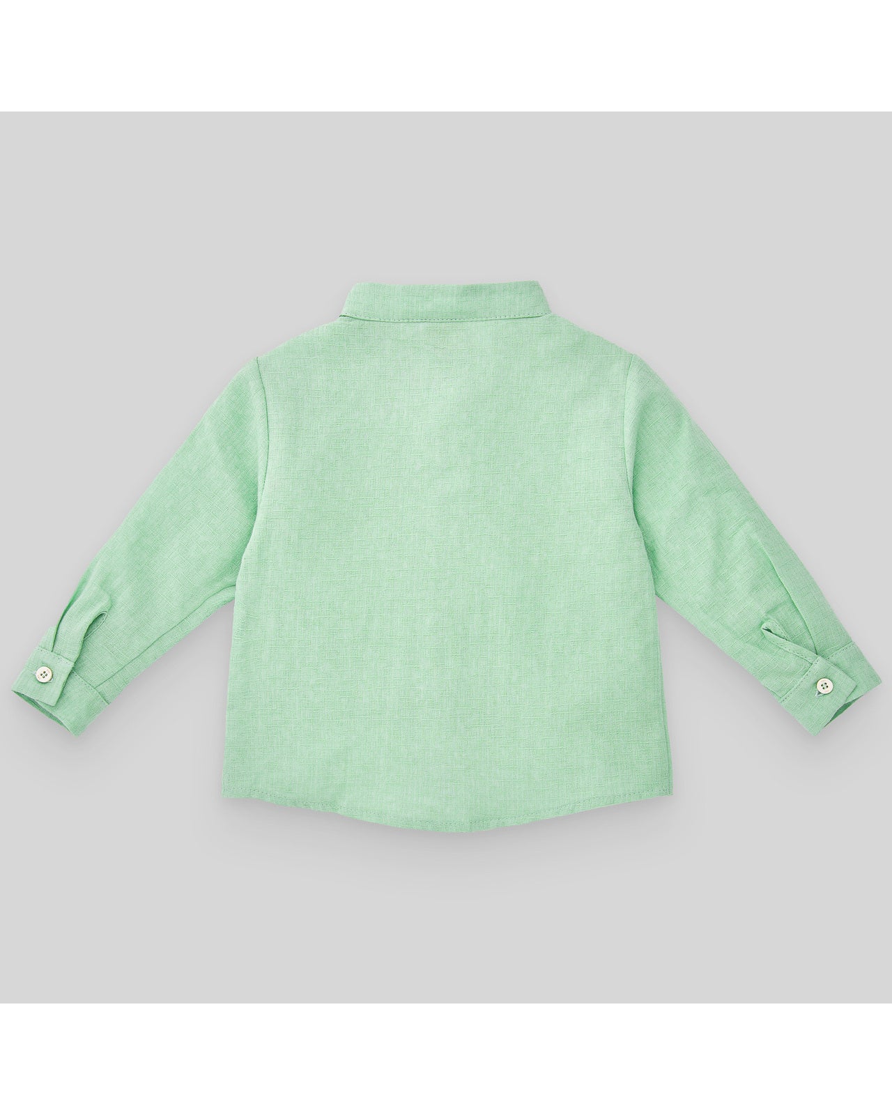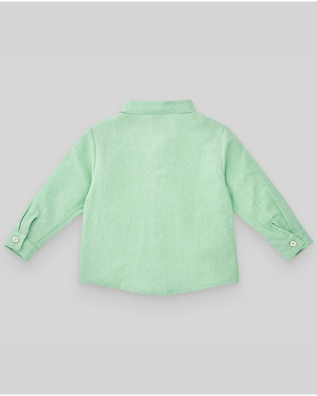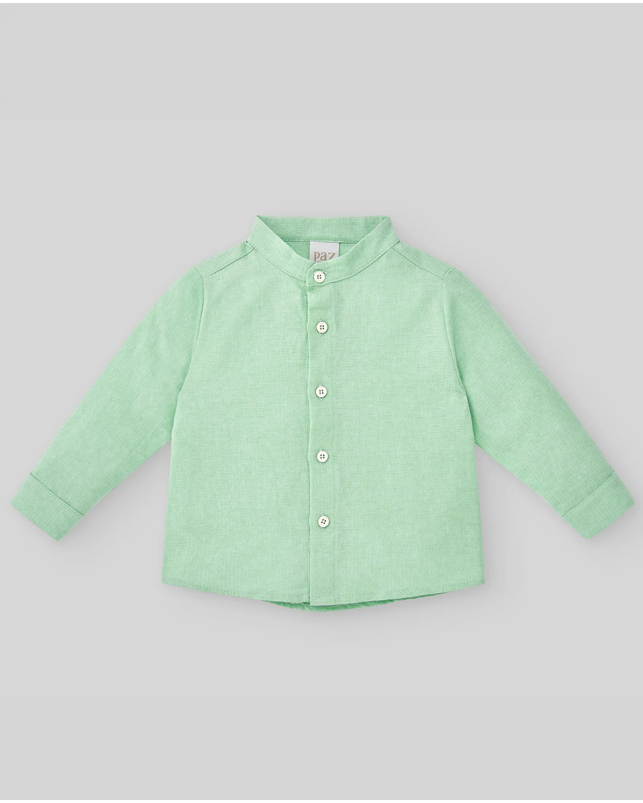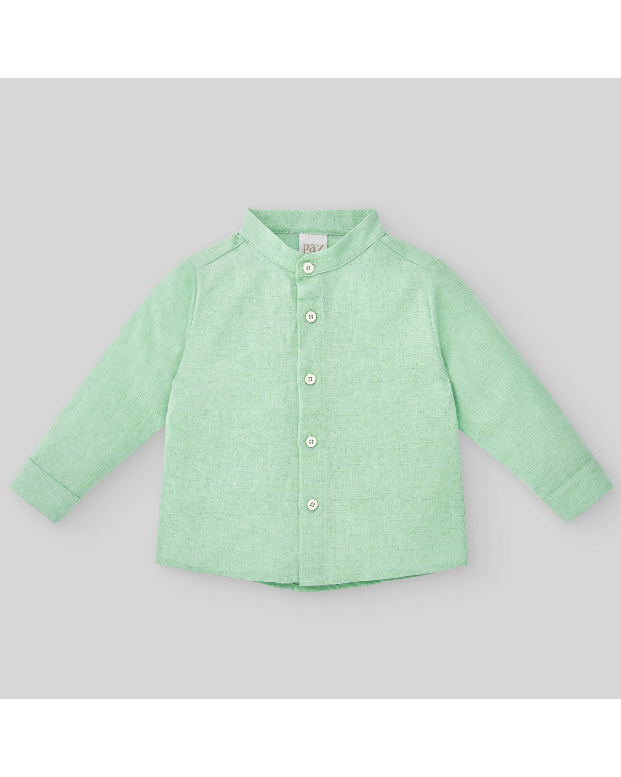 Camisa con cuello mao y manga larga para niño. Cierre botonadura frontal.