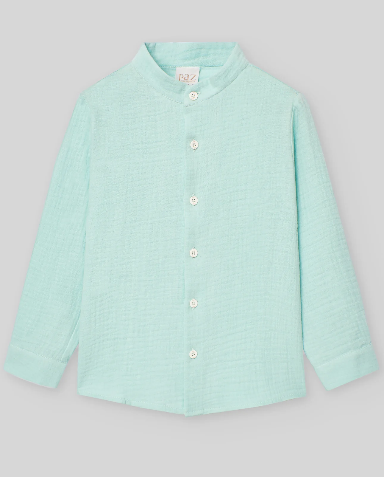 Camisa con cuello mao y manga larga en tejido con aspecto rústico de algodón. Cierre botonadura frontal. Botón en los puños para mayor ajuste.
