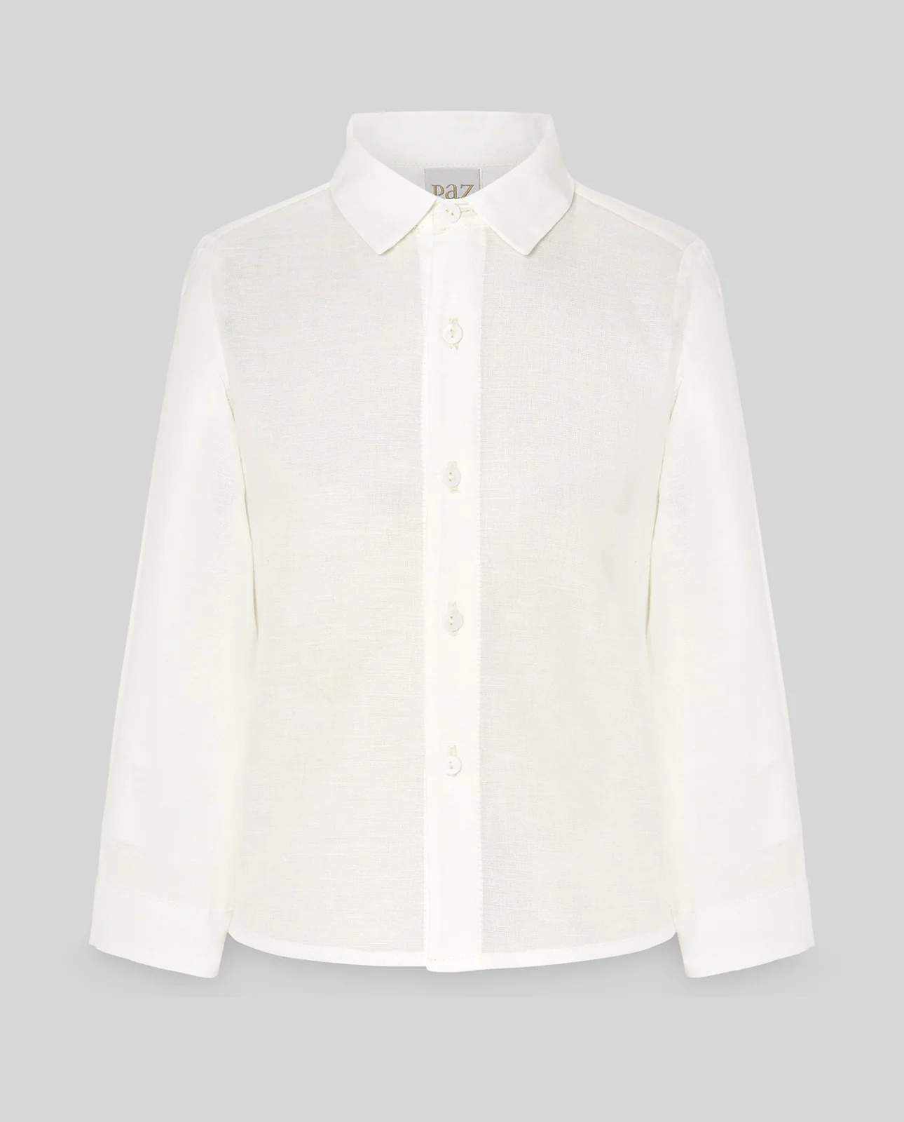 Camisa de lino para niño, con cuello pala. Botones a tono. Ideal para combinar con sus looks o para eventos especiales.