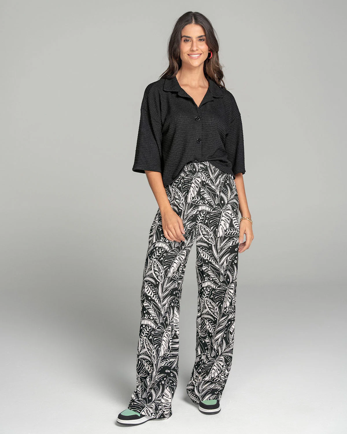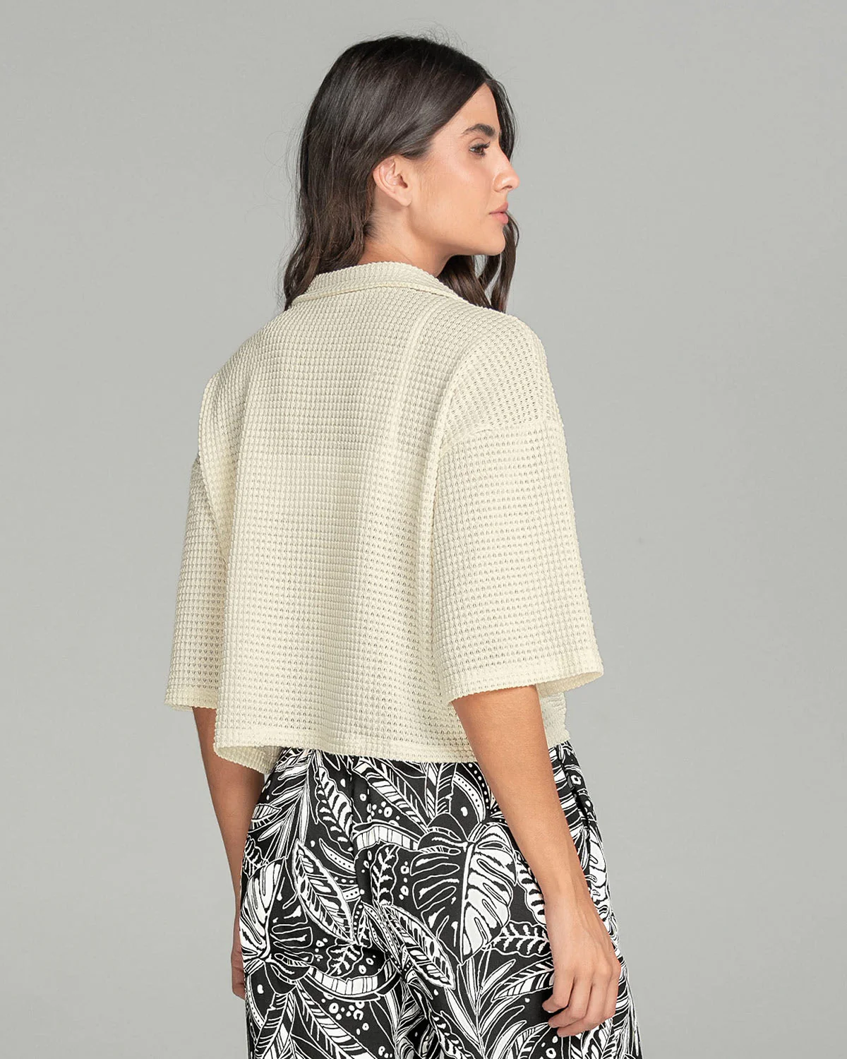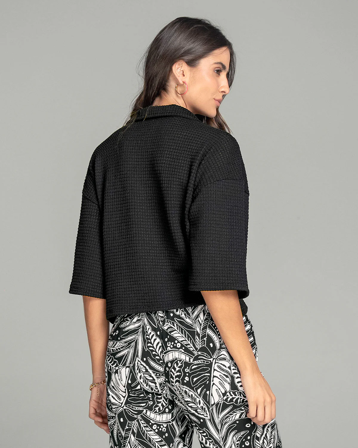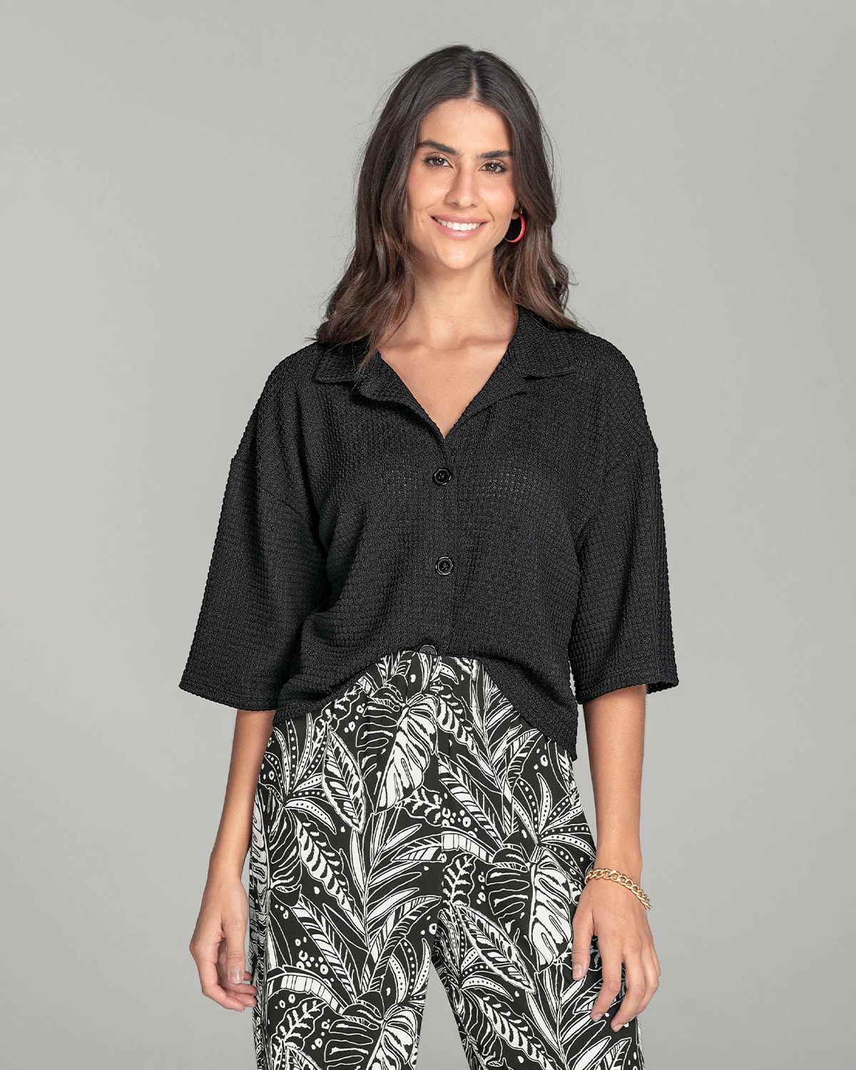 Esta camisa manga 3/4 es muy versátil. Cuenta con cuello camisero sport y perilla funcional. Sus mangas son anchas lo que le da un look más casual y relajado. Úsala cerrada como prenda individual o abierta como tercera prenda y tendrás muchos looks por crear.