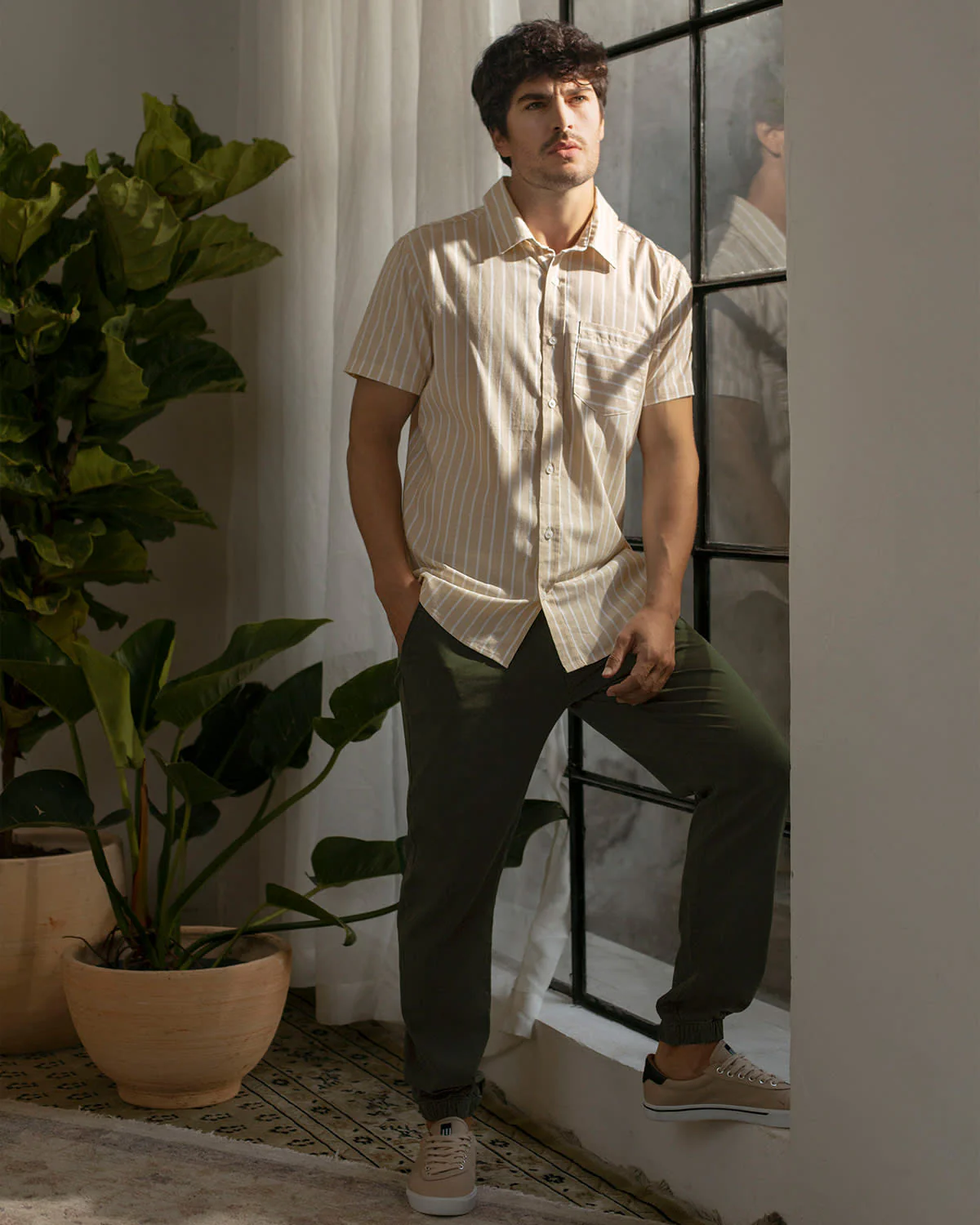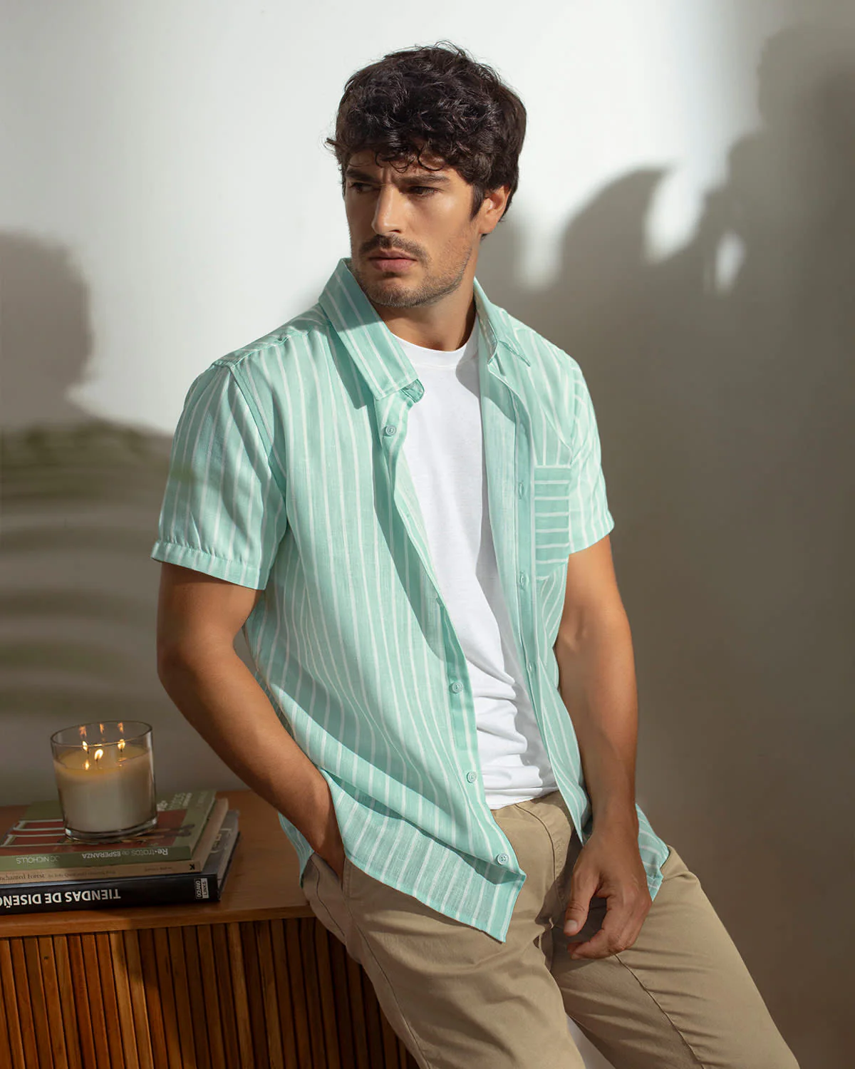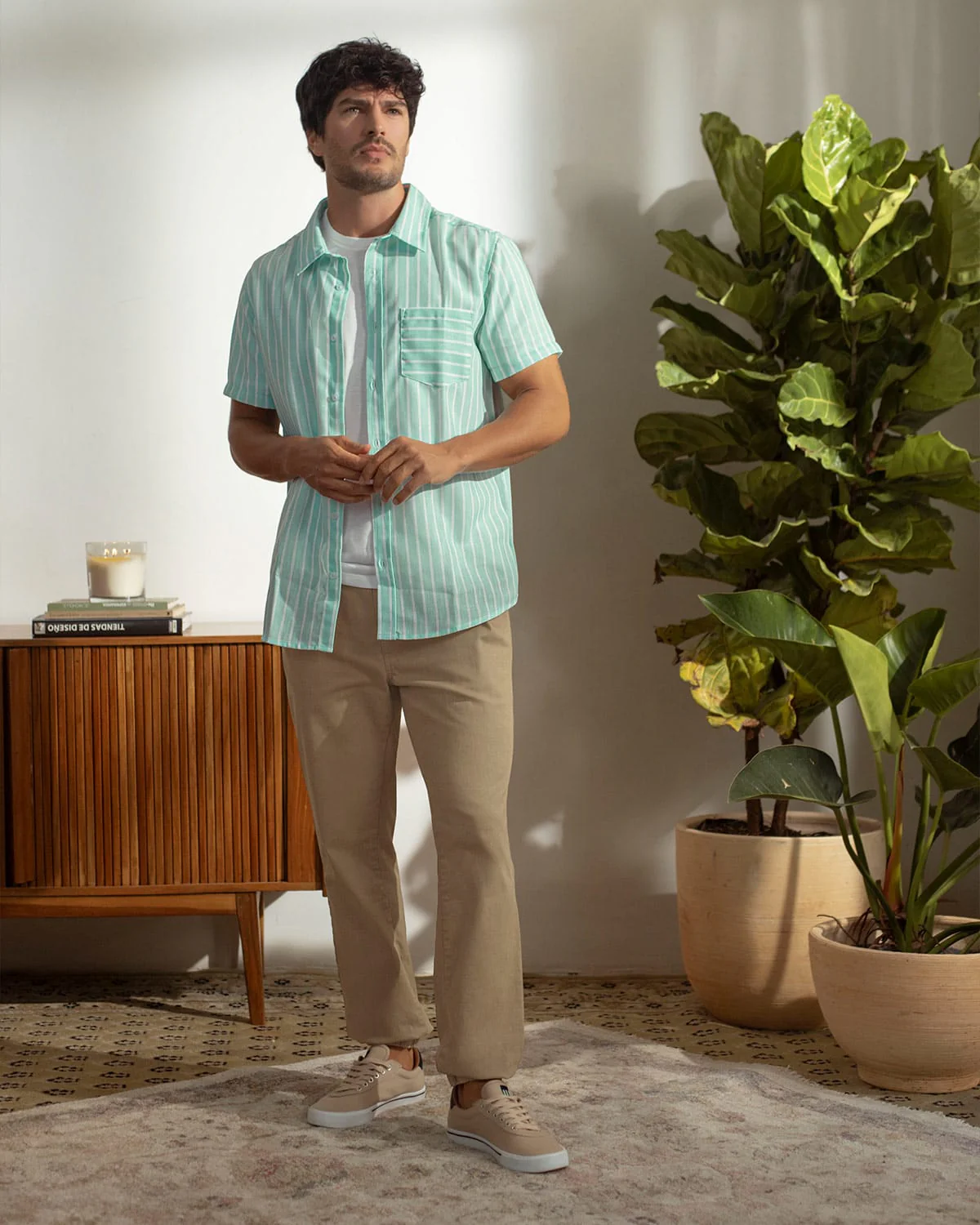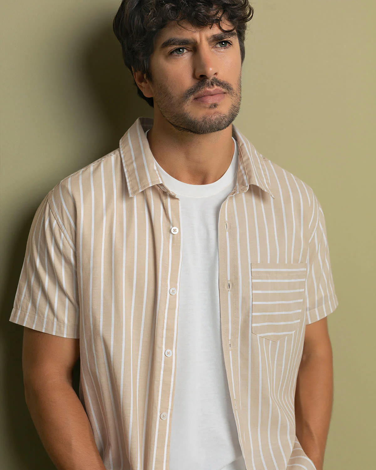 Las rayas nunca pasan de moda. Esta camisa es perfecta para looks casuales. Es fresca y liviana y está elaborada en algodón para darte una sensación mayor de comodidad.