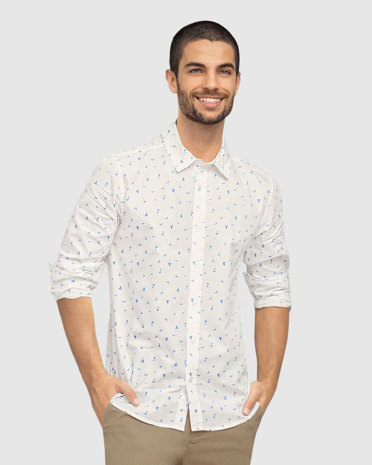 Nueva básica para tus looks formales: camisa manga larga con botones y mini print, ¡siempre será una buena elección!