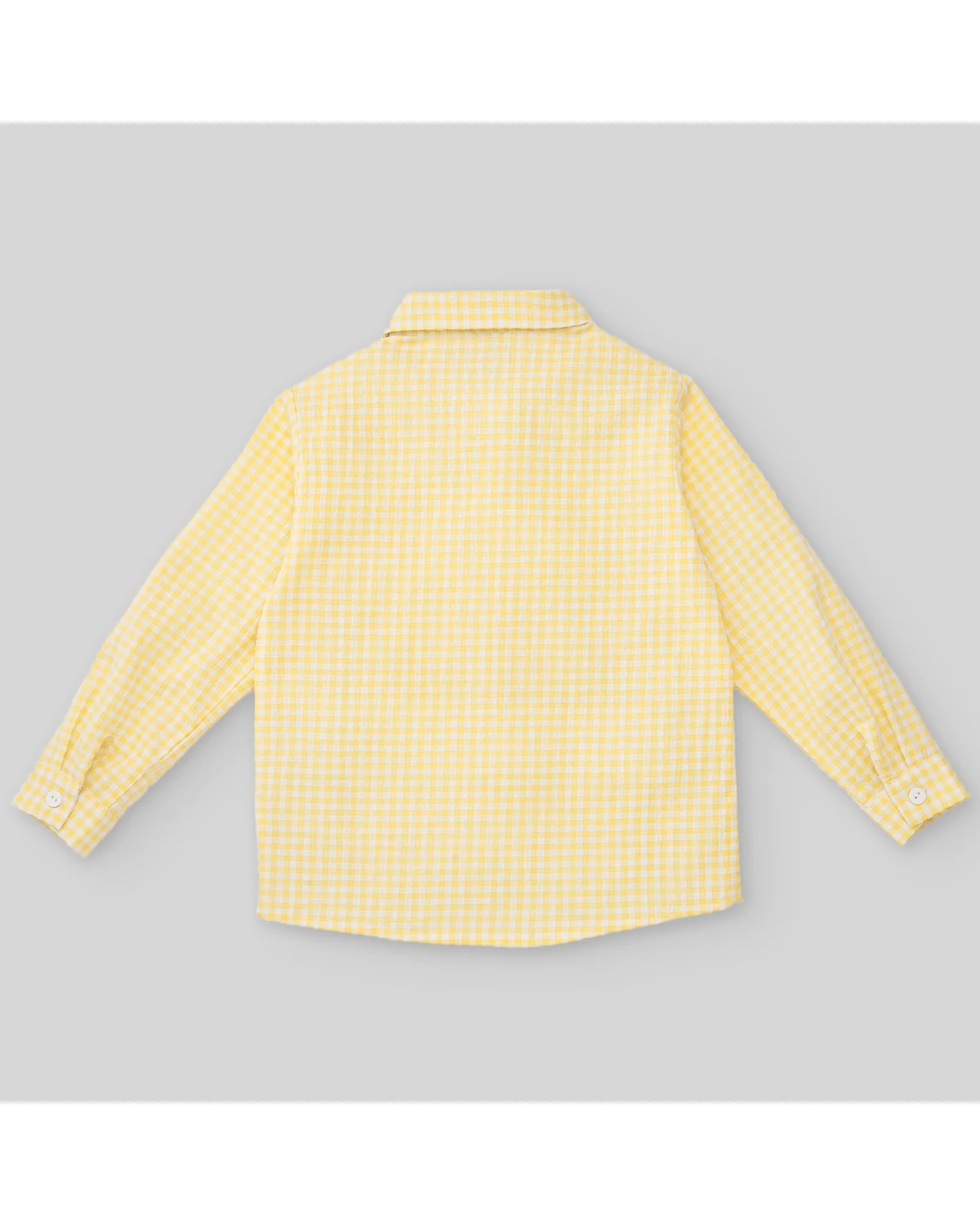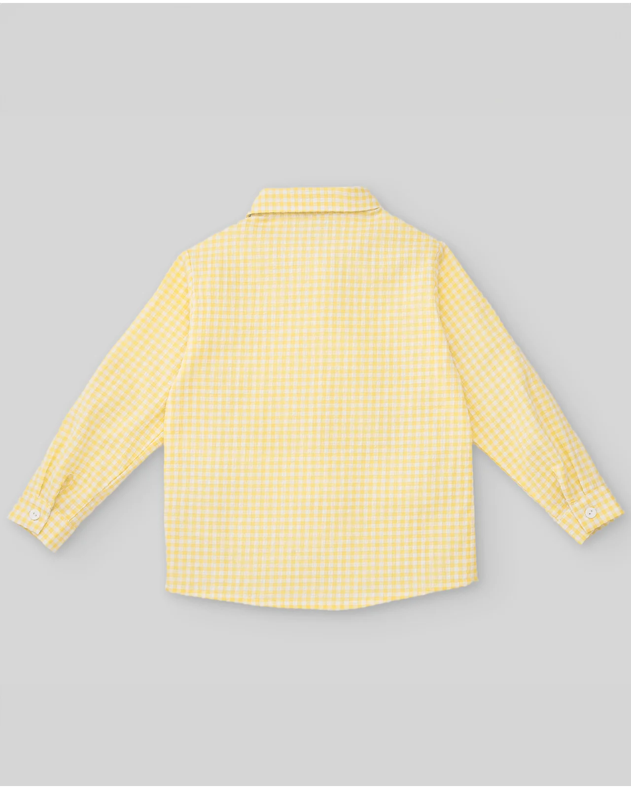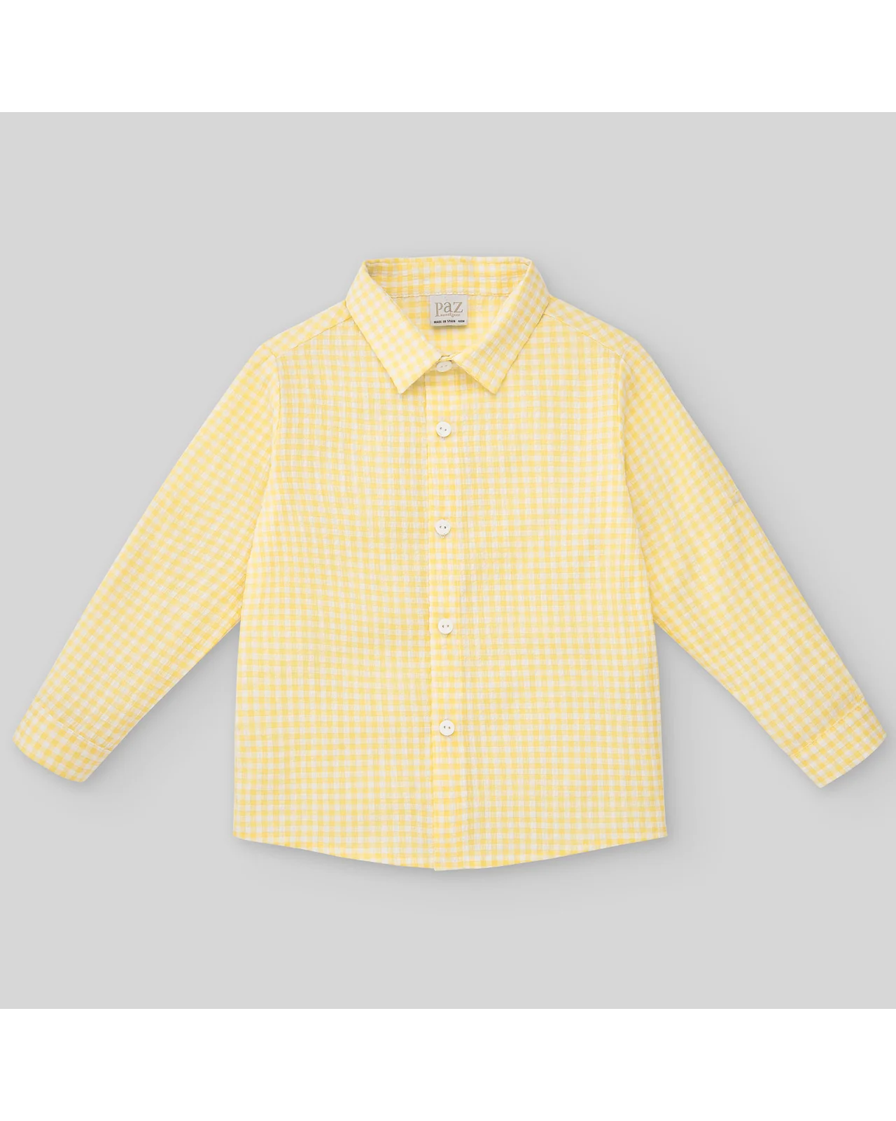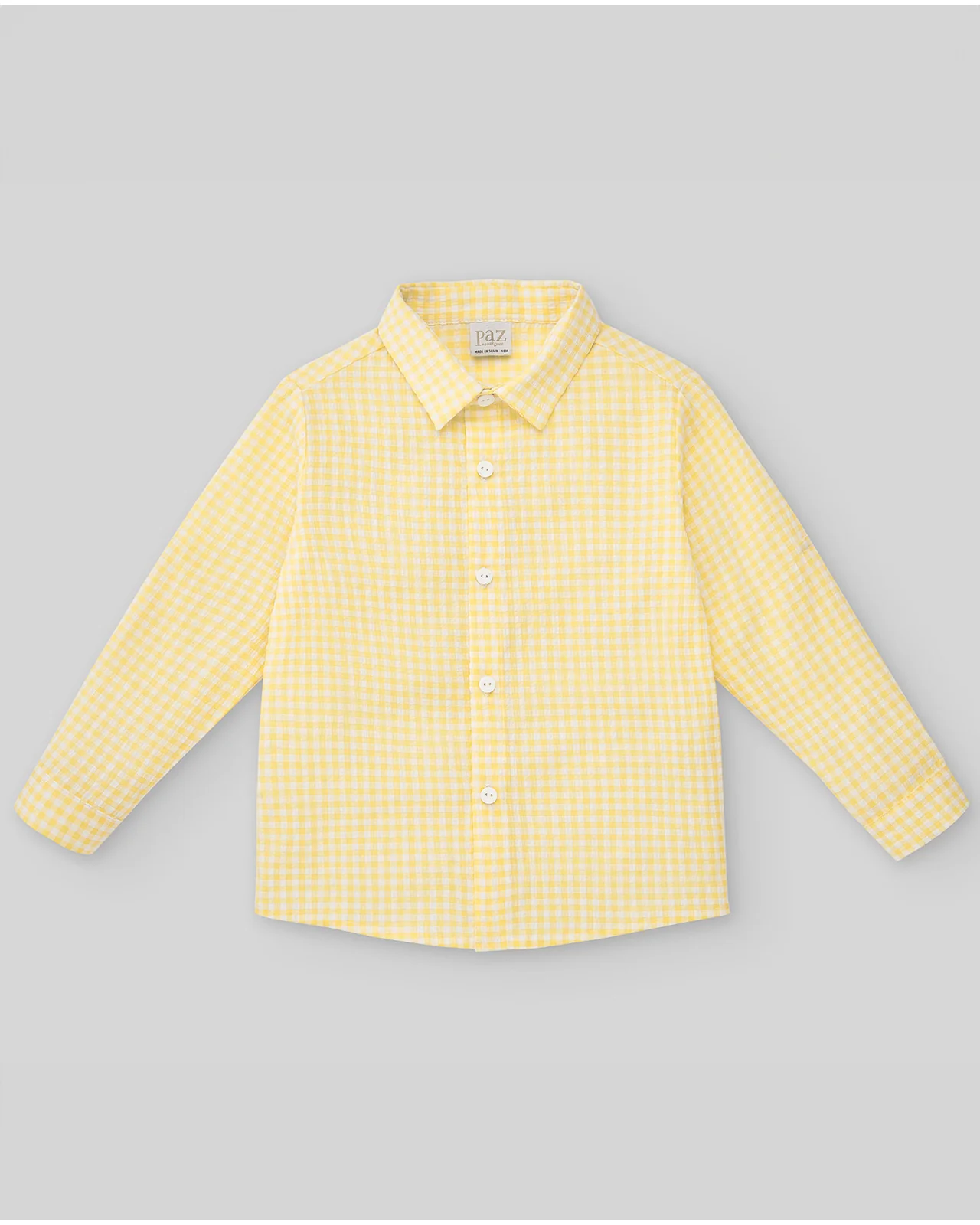 Camisa con cuello camisero y manga larga para niño. Estampado cuadro vichy. Cierre botonadura frontal.